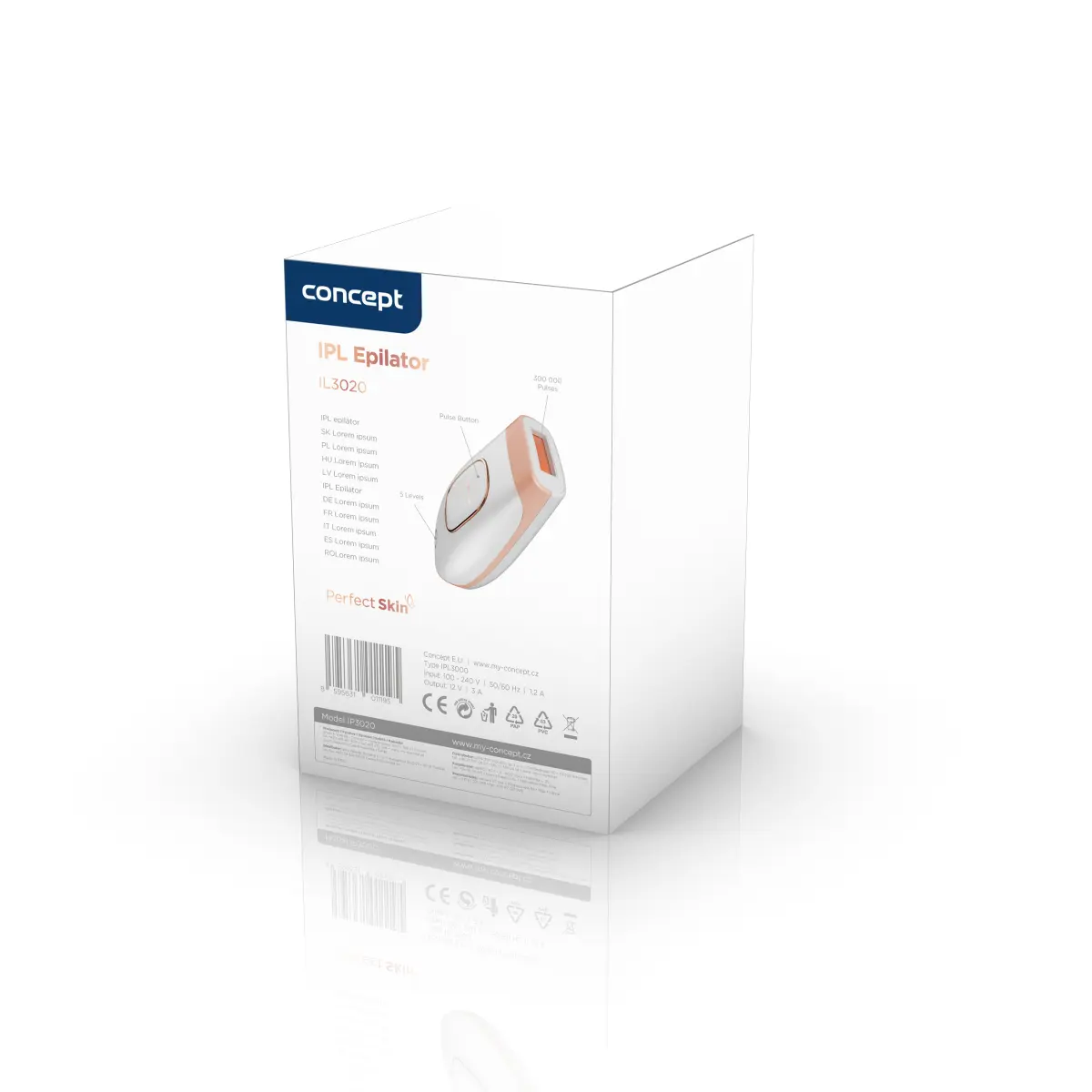 IPL epilátor Concept IL3020 Perfect Skin; Profesionálna IPL technológia; Dlhotrvajúca epilácia; 300 000 impulzov; Dlhodobo hladká pokožka; Túžite po hladkej pokožke bez chĺpkov? S IPL epilátorom Concept IL3020 Perfect Skin to môžete dosiahnuť v pohodlí