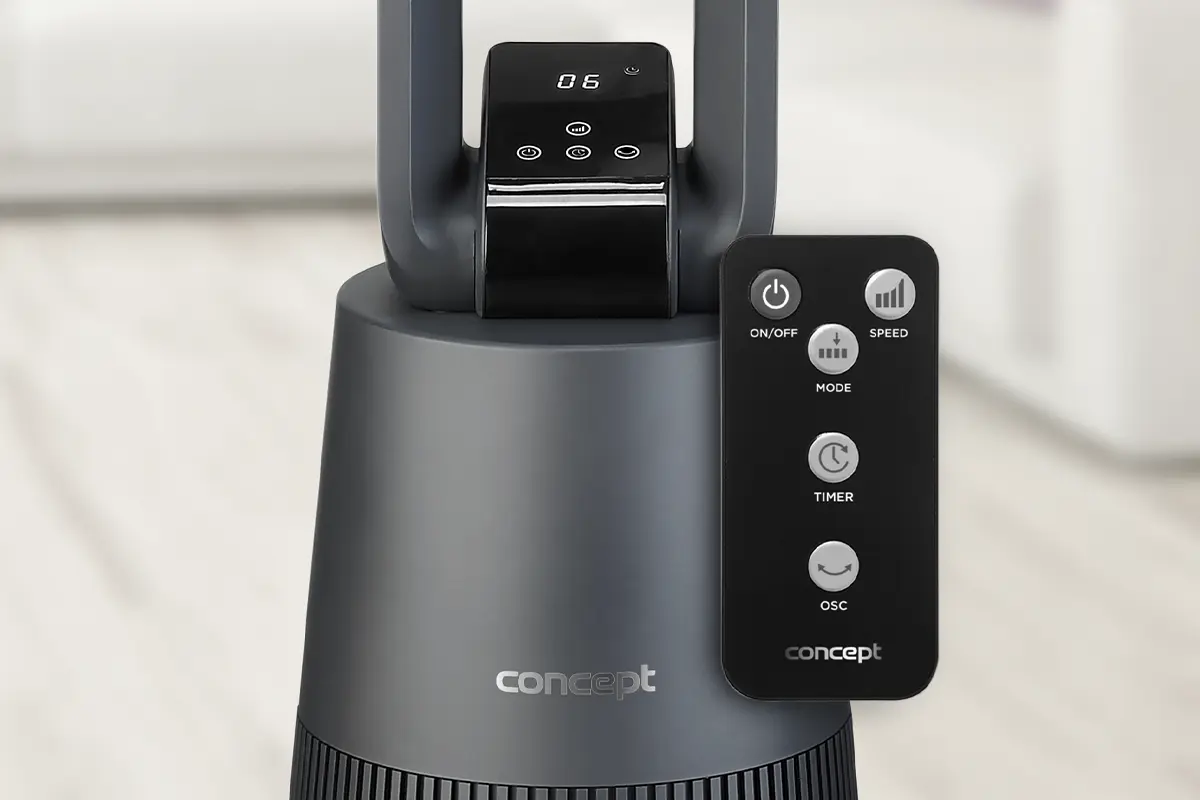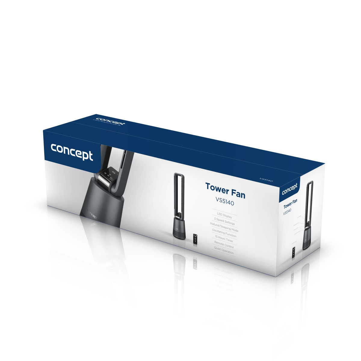 Stĺpový ventilátor Concept VS5140 prinesie príjemné ochladenie počas horúcich letných dní. Vyniká elegantným designom, vďaka ktorému sa hodí do každej modernej domácnosti. Veľkou prednosťou je jeho moderné bezlopatkové prevedenie, čo ocenia predovšetkým domácnosti s malými deťmi, pretože eliminuje nebezpečie úrazu. Ventilátor je vybavený stabilnou základňou, ktorá zaisťuje maximálnu bezpečnosť počas prevádzky a zabraňuje nechcenému prevrhnutiu. S príkonom iba 50 W sa radí medzi veľmi úsporné spotrebiče.