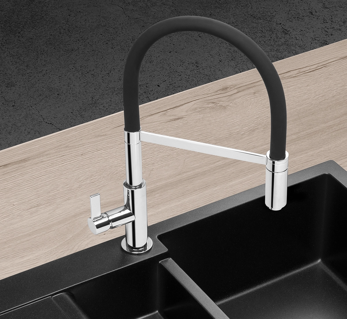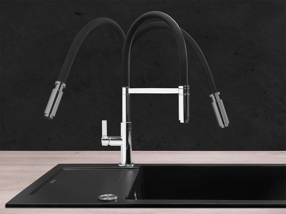 Drezová batéria BDC7547 s lesklým chrómovým povrchom vyniká moderným spracovaním a elegantným designom. Je vybavená flexibilnou silikónovou hadicou, ktorú kedykoľvek môžete ľahko odobrať. Vďaka tejto hadici sa ľahko dostanete i na menej prístupné miesta a dokonale umyjete každý kúsok vášho riadu. Batériu BDC7547 ľahko zladíte s akýmkoľvek drezom Concept.