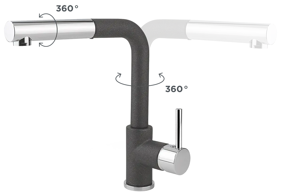 Batéria BDG4527dg je otočná o 360°, takže sa plne prispôsobí vašim potrebám. Túto variabilitu oceníte predovšetkým v spojení s flexibilnými drezmi Concept, ktoré ponúkajú obojstranné využitie. vďaka plne otočnému systému môžete batériu umiestniť z akejkoľvek strany. Ďalšou výhodou je pákový systém, vďaka ktorému sa veľmi pohodlne ovláda. Jednou rukou rýchlo navolíte správnu teplotu aj silu prúdu, takže nebudete zbytočne plytvať vodou a znížite jej spotrebu.