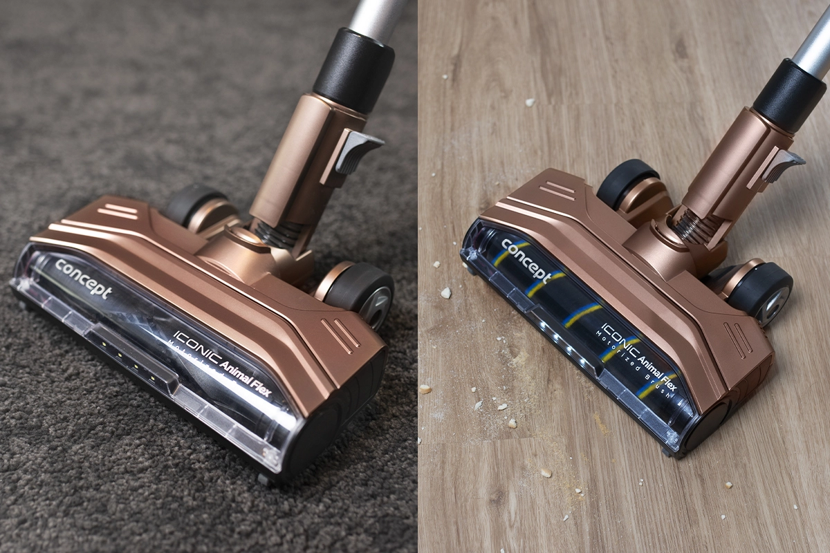 S tyčovým vysávačom Iconic Aimal Flex VP6120 povysávate tvrdé podlahy i koberce. Podlahová hubica je vybavená vlastným pohonom, ktorý zvyšuje saciu silu, takže dosiahnete vysoko efektívne upratovanie za oveľa kratšiu dobu. Vyberať môžete z 2 kefiek, takže si poradí naozaj s každým povrchom. Carpet kefa je tvorená kombináciou štetín a gumových lamiel a je vhodná na všetky druhy podláh vrátane kobercov. Pokiaľ vo vašej domácnosti prevládajú tvrdé podlahy, odporúčame nasadiť HardFloor kefu. Vďaka mäkkému povrchu so špeciálnymi vláknami je veľmi šetrná k vašim podlahám a dokáže zachytiť až 3x viac nečistôt vrátane miniatúrnych častíc.