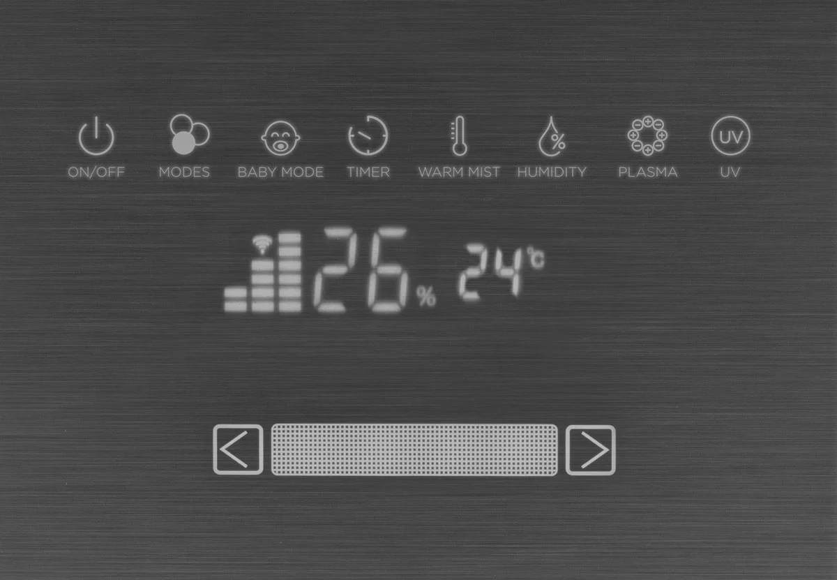 Po zapnutí pracuje zvlhčovač v režime Auto, v ktorom kontroluje optimálnu vlhkosť v závislosti na teplote v miestnosti. Aktiváciu režimu Health udržuje vlhkosť na optimálnej hodnote 60 % a súčasne sa aktivujú funkcie ohrievaného zvlhčovania a UVC. V režime Baby udržuje vlhkosť na hodnote 55 % a aktivuje funkciu ohrievaného zvlhčovania, plazmu a UVC. Hodnotu vlhkosti vzduchu môžete nastaviť tiež manuálne v rozmedzí od 30-75 %. V nočnom režime Night zvlhčovač pracuje so zhasnutými indikátormi na dotykovom panely.