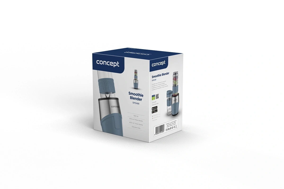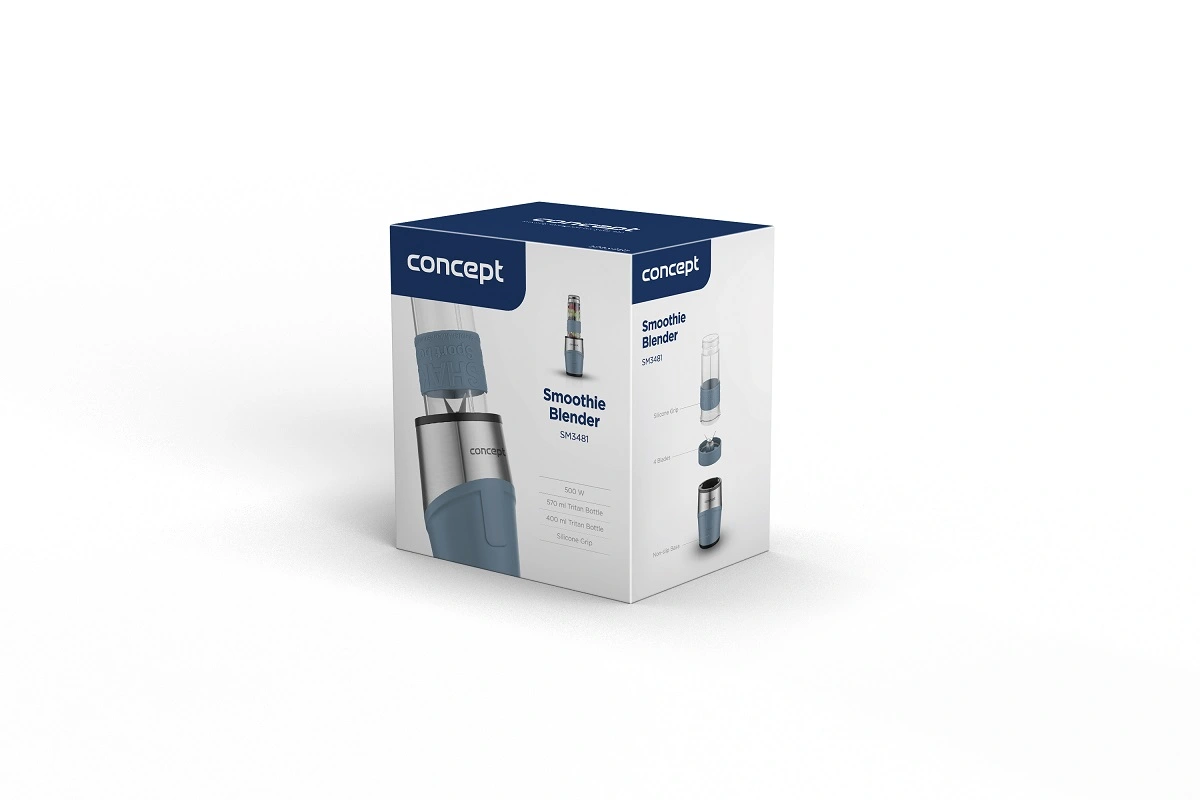 Smoothie blender Concept SM3481 je určený pre rýchlu prípravu vašich obľúbených nápojov. Disponuje dvoma mixovacími nádobami, z ktorých môžete rovnou piť. Stačí len vymeniť nože za veko a fľašu so smoothie si môžete vziať kamkoľvek so sebou. Veko je vybavené pútkom a špeciálnym dvojitým tesnením, takže máte istotu, že sa vám váš nápoj nevyleje. Perfektne zapadne tiež do držiaka nápojov v aute.