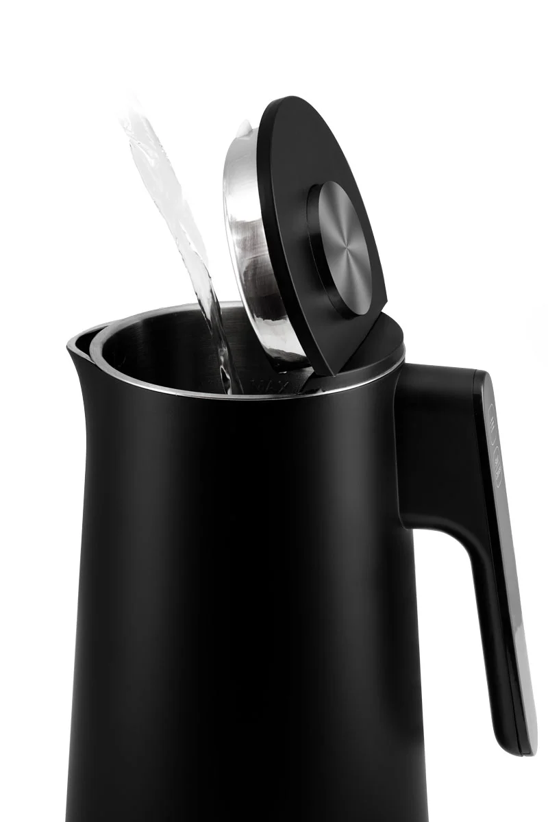 Rýchlovarná kanvica je vybavená digitálnym ovládaním s možnosťou nastavenia 7 stupňov teploty, takže v nej pripravíte všetko od detských príkrmov po najrôznejšie druhy čajov. Vyniká dizajnom dymového skla a nerezu s farebným podsvietením.