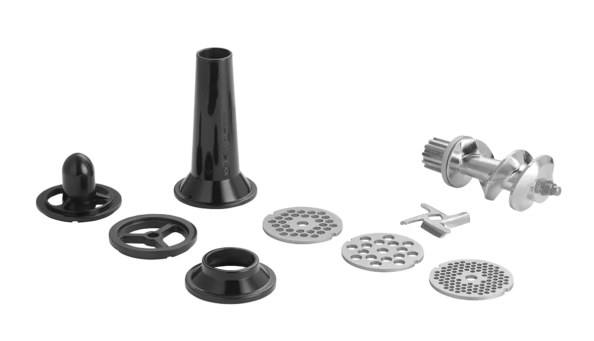 S pomocou mlynčeka ľahko pripravíte hamburgery, fašírky, lasagne aj čevabčiči presne podľa svojich predstáv. V balení nájdete tri výmenné sitká - jemné na paštéty a jemné zmesi, stredné ideálne na sekanú a fašírky a hrubé na mletie mäsa na klobásy. Vďaka nástavcu na plnenie si vyrobíte domáce párky a klobásy tak, ako ich máte radi. Súčasťou je aj praktický nástavec na mäsové guličky, s ktorým pripravíte guličky do polievky, omáčky alebo na gril.