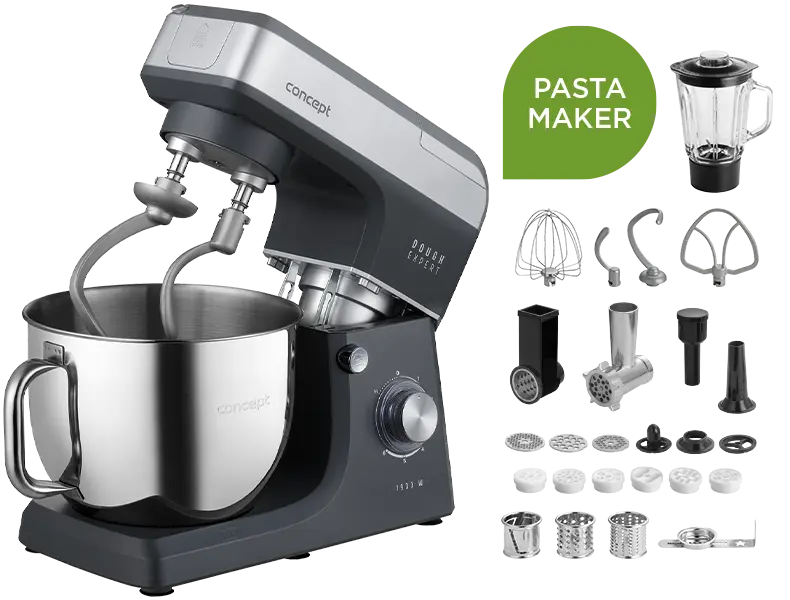 DOUGH EXPERT nie je len obyčajný kuchynský robot - je to špecialista na kysnuté cestá. Oproti bežným modelom disponuje dvojitým hnetacím hákom a praktickou funkciou prihrievania nádoby, vďaka čomu cesto dokonale spracuje a nechá ideálne vykysnúť. Samozrejme zvládne aj ďalšie kuchárske úlohy – šľahanie, miešanie či mixovanie. Vďaka bohatému príslušenstvu ľahko umelo mäso, naplní párky, pripraví domáce cestoviny i pečivo. V kompaktnom dizajne ukrýva funkcie niekoľkých spotrebičov, takže šetrí miesto na linke aj váš čas. Jeden robot, nekonečné možnosti – perfektná voľba pre každú modernú kuchyňu.