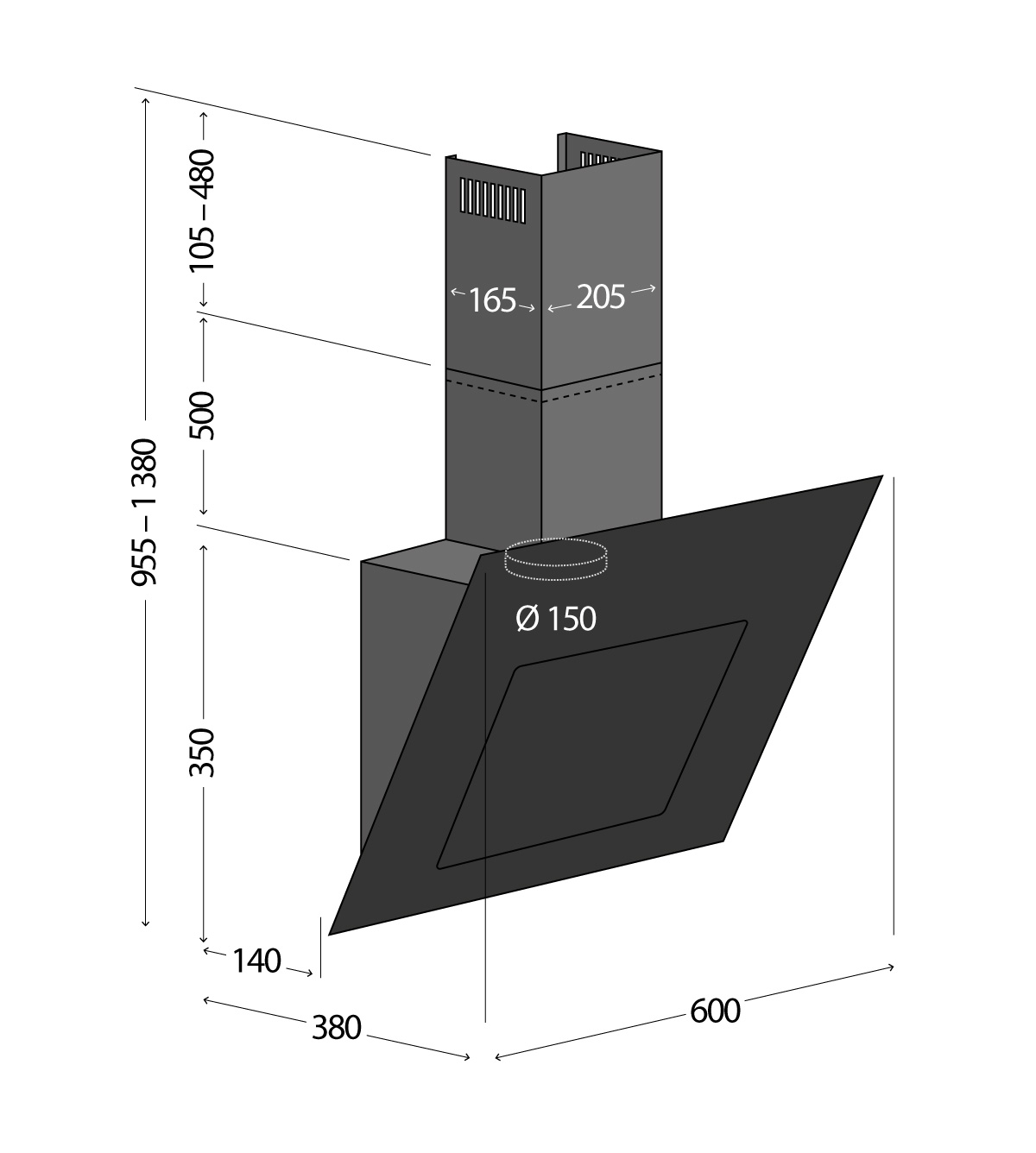 Výkon odsávača by mal zodpovedať minimálne sedemnásobku a ideálne desaťnásobku objemu miestnosti, z ktorej má odvádzať výpary. Ak máte kuchyňu prepojenú s obývacím priestorom, musíte započítať obidve izby. Pokiaľ si prajete tichý odsávač, odporúčame vykonať výpočet optimálneho výkonu odsávača a trochu ho "predimenzovať". Potom môžete na odvetrávanie používať len 1. a 2. stupeň, ktoré majú tichšiu prevádzku. Rovnako dôležité je aj umiestnenie odsávača nad varnou plochou, keď minimálna vzdialenosť nad elektrickou varnou doskou je 650 mm, nad plynovou 750 mm.