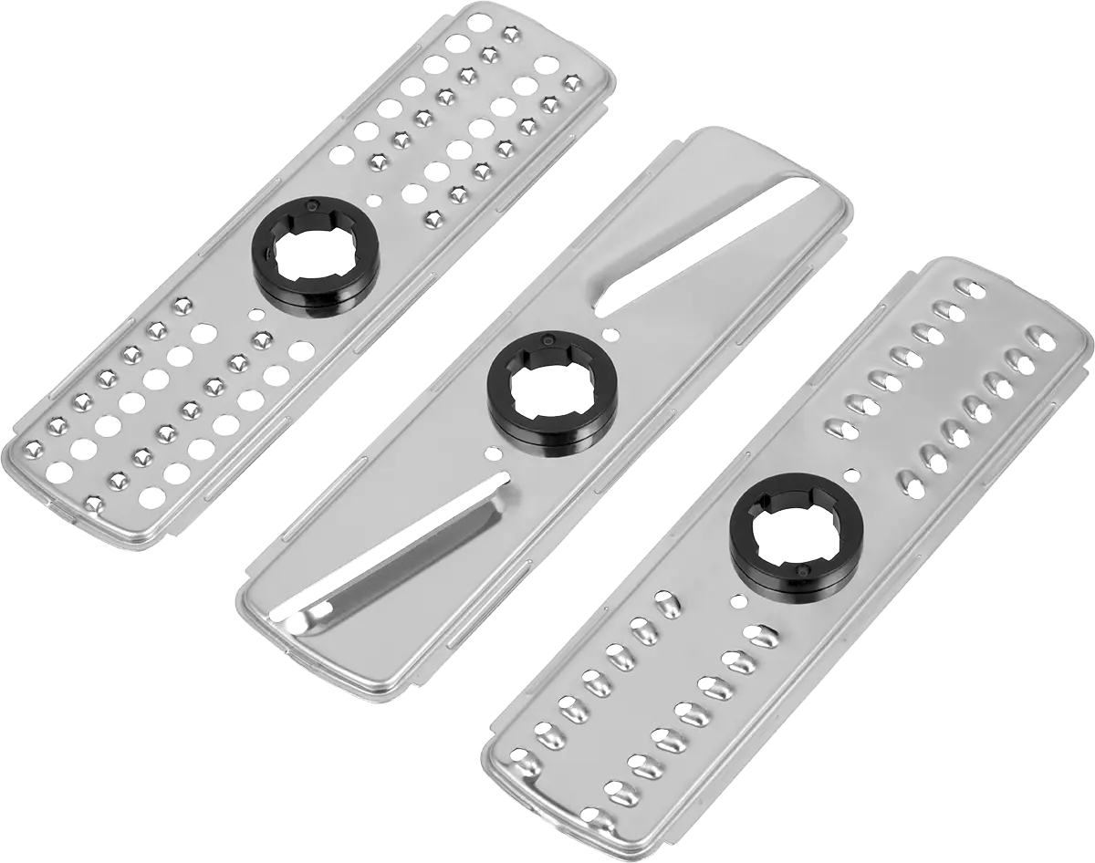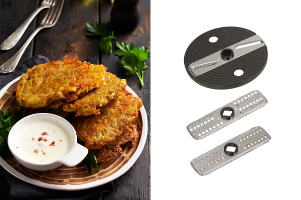 Food processor vás zbaví zdĺhavého krájania a strúhania. Je vybavený 3 vymeniteľnými nástavcami na strúhanie, krájanie plátkov a špeciálnym strúhadlom na prípravu domácich zemiakových placiek.