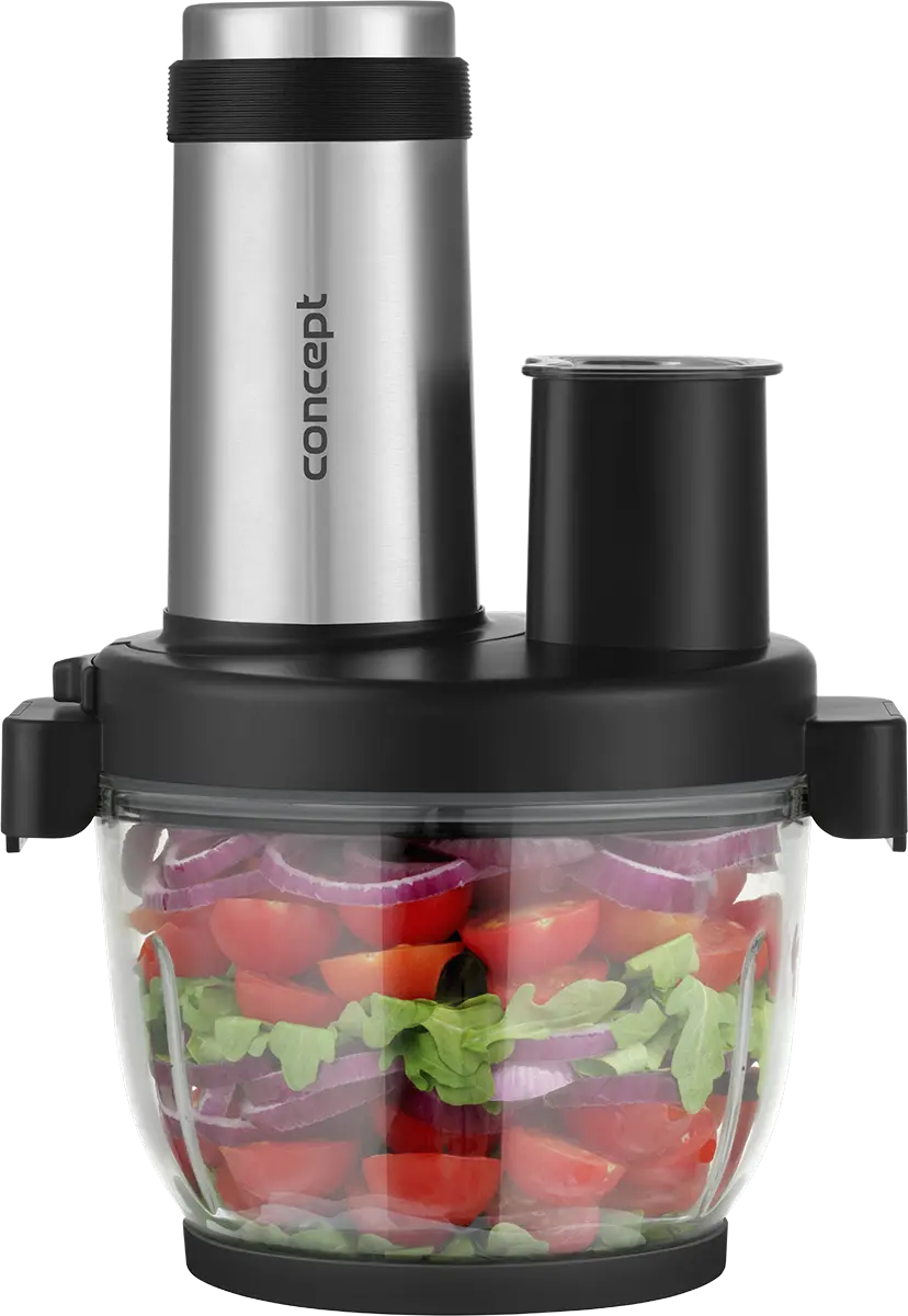 Chopper predstavuje najrýchlejší spôsob sekania potravín. Vďaka kvalitným a extrémne ostrým nerezovým nožom si poradí s akoukoľvek surovinou. Za okamih najemno naseká zeleninu, ovocie, mäso, bylinky, nadrví orechy aj ľad.
