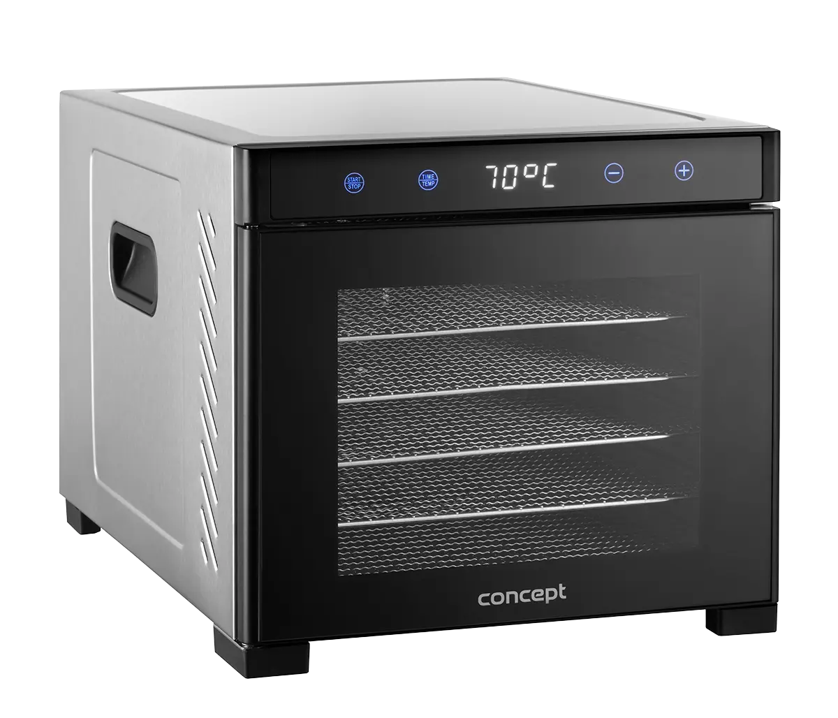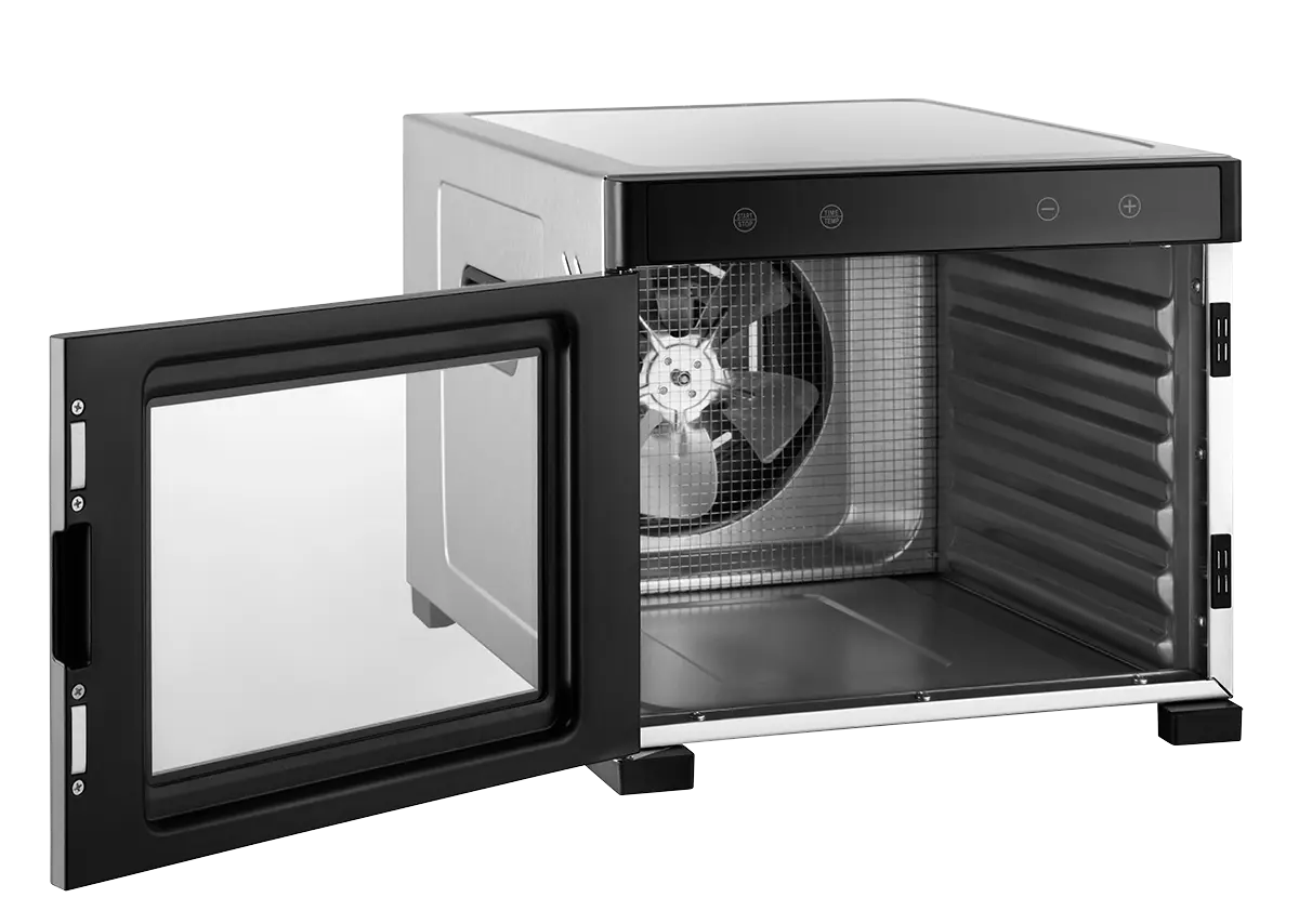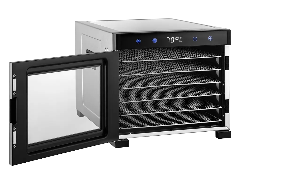 Obsluha sušičky SO2000 je vďaka digitálnemu dotykovému ovládaniu veľmi jednoduchá a intuitívna. Umožňuje nastavenie teploty v rozmedzí od 35 do 70 °C podľa vašej aktuálnej potreby a druhu sušených potravín. Využiť môžete i časovač s nastavením až na 24 h, ktorý vám postráži požadovanú dobu sušenia. Po uplynutí zvolenej doby sa sušička automaticky vypne. Samozrejmosťou je tiež bezpečnostná poistka, ktorá chráni sušičku proti prehriatiu.