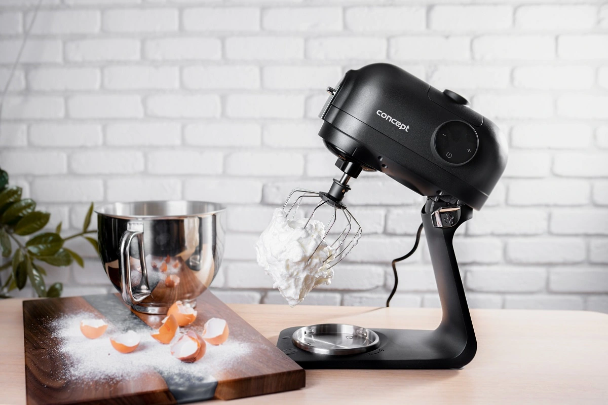 Robot je opatrený štyrmi druhmi celokovových metiel. Miešacia metla je vhodná na trené a iné stredne ťažké cestá. Flexi metlu oceníte pri príprave ľahkých krémov, náplní a poliev. Vďaka gumovej stierke dokonale kopíruje misu a perfektne stiera zmes zo stien. Šľahacia metla je ideálna na šľahanie vajec, bielkov, šľahačky, ľahkých krémov, majonézy i omáčok. Hnetací hák si skvelo poradí so spracovaním kysnutých ciest, napr. na buchty, chlieb alebo pizzu. Súčasťou robota je i 5 litrová nerezová misa s praktickým držadlom a vekom.