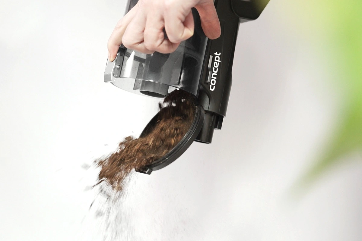 Celé telo vysávača je plne rozložiteľné a umývateľné. Prachová nádoba disponuje objemom 0,6 l a jej čistenie je veľmi rýchle a hygienické. Po jej naplnení stačí jednoducho stlačiť tlačidlo, nádoba sa otvorí a nečistoty jednoducho vysypete. Vysávač je vybavený účinným HEPA filtrom 13, čo ocenia najmä alergici a rodiny s malými deťmi. Vďaka senzoru znečistenia filtra budete presne vedieť, kedy je nutná jeho výmena, aby vám vysávač dlho a spoľahlivo slúžil.