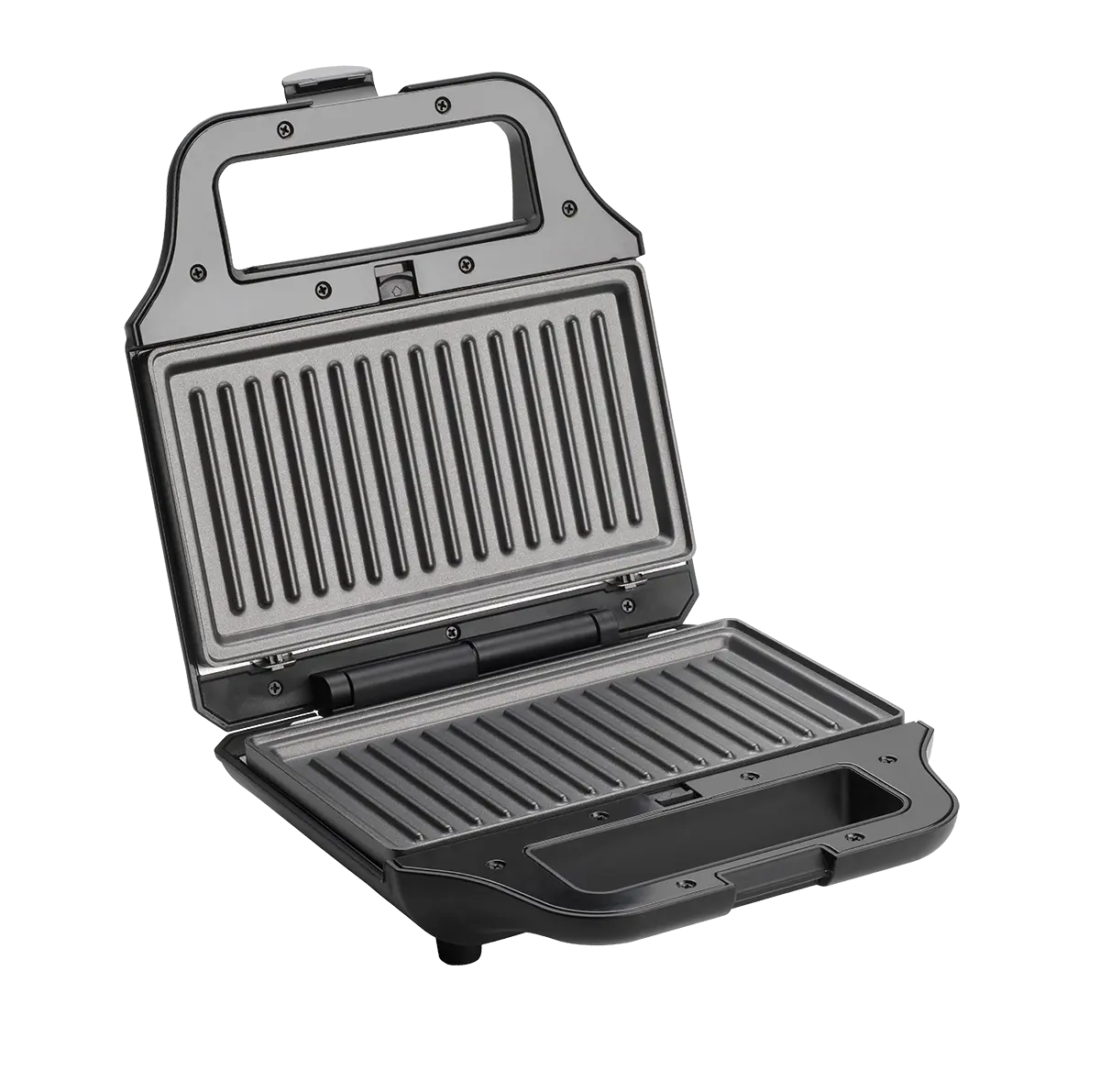 Sendvičovač je opatrený svetelnou kontrolkou nahriatia a automatickou reguláciou teploty. Vďaka studenému držadlu sa počas práce nespálite a bezpečnostný pánt sa postará o uzamknutie dosiek počas práce. Nechýbajú ani protišmykové nožičky pre zaistenie lepšej stability.