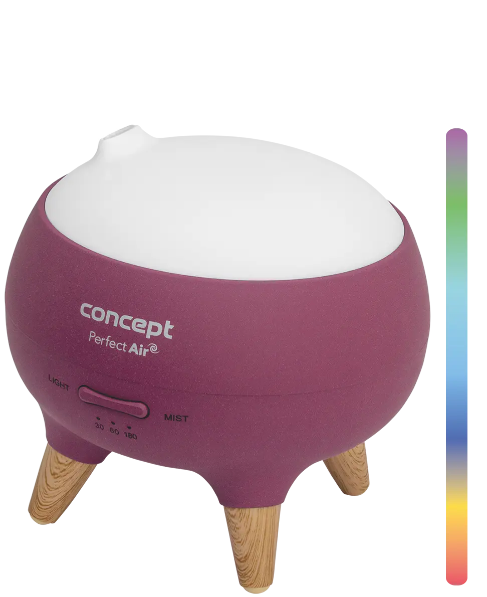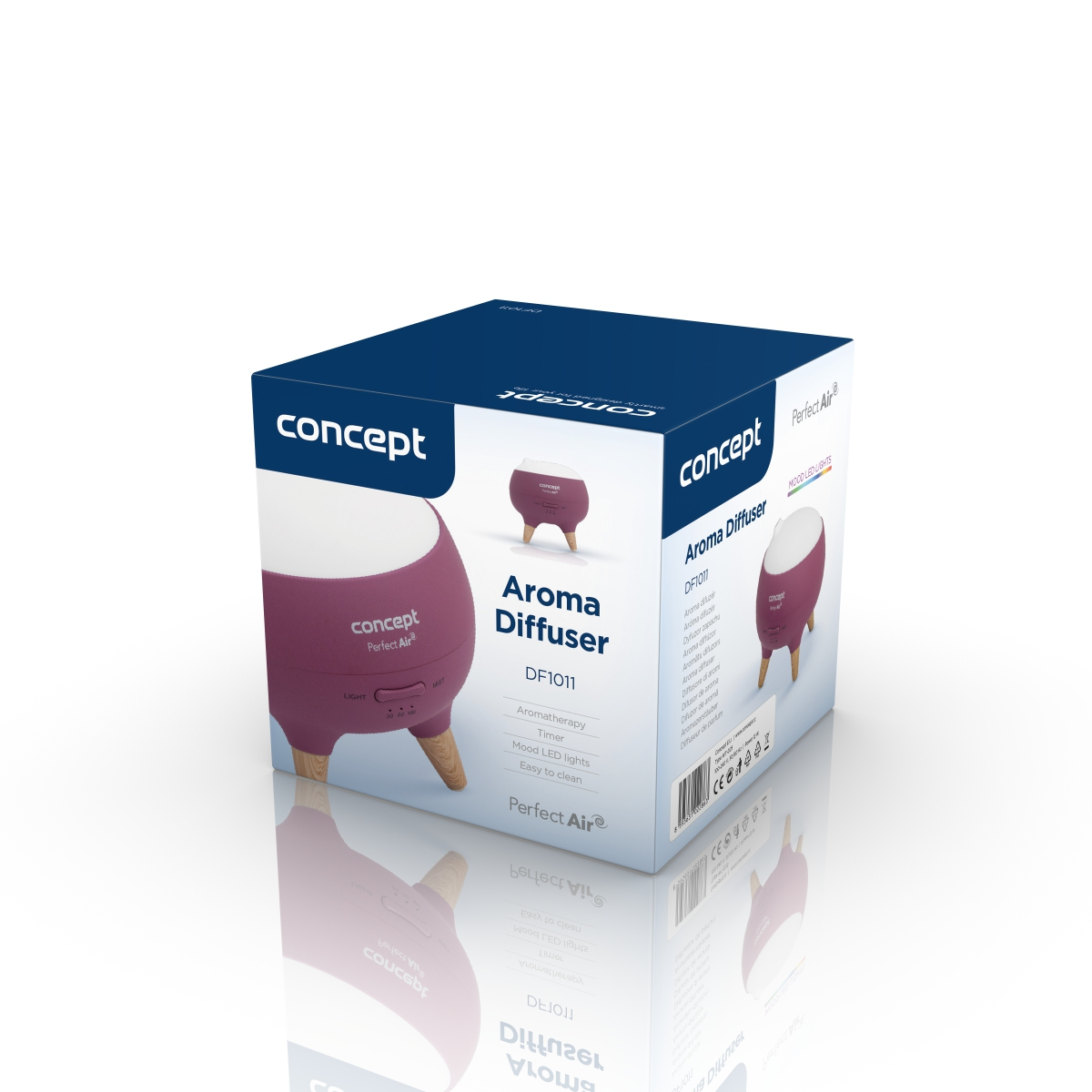 Ultrazvukový aroma difuzér Concept DF1011 Perfect Air nádherne prevonia a zároveň zvlhčí vzduch vo vašej domácnosti. Disponuje nádobkou na vodu s objemom 250 ml, ktorá poskytuje až 9 h nepretržitej prevádzky. Aj napriek svojmu minimalistickému designu je vhodný do miestností s veľkosťou až 50 m?. Je spracovaný z kvalitného antibakteriálneho materiálu, ktorý zaručuje bezpečnú prevádzku.
