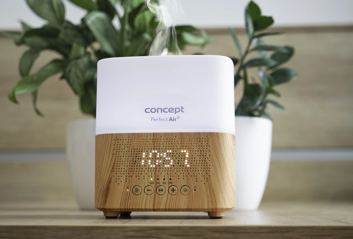 Aroma difuzér Dark wood Concept DF2011 Perfect Air; Bluetooth prehrávač; Budík; Aromaterapia; Atraktívny, minimalistický a multifunkčný aroma difuzér; Atraktívny aroma difuzér Concept DF2011 okúzli svojimi funkciami. Okrem aromaterapie ho môžete využiť