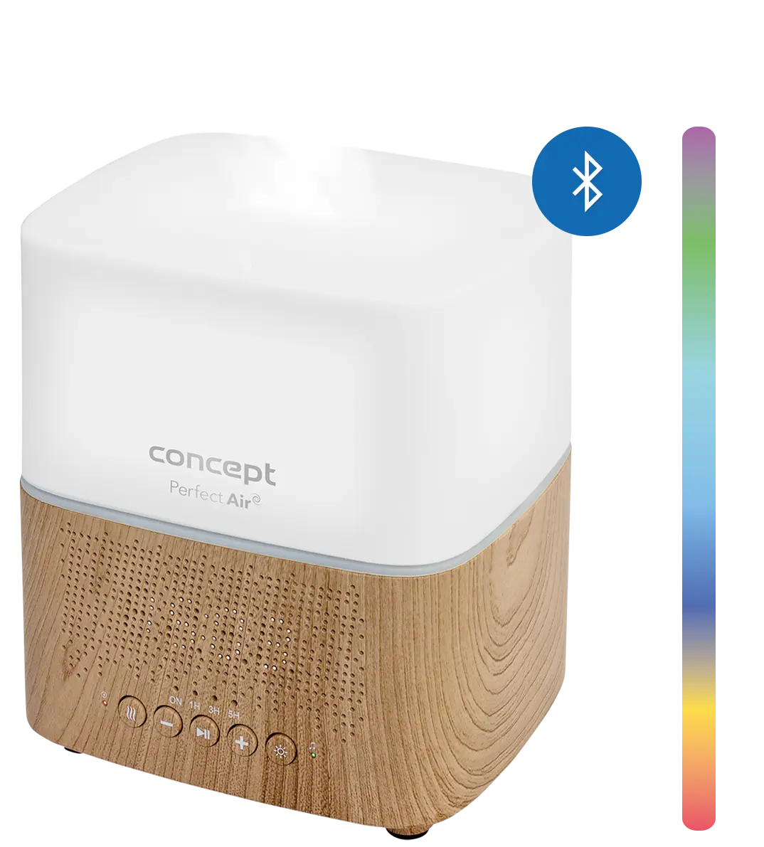Atraktívny aroma difuzér Concept DF2010 okúzli svojimi funkciami. Okrem aromaterapie ho môžete využiť ako zvlhčovač, Bluetooth reproduktor alebo budík. S nádobkou s objemom 300 ml ponúka až 10 h nepretržitej prevádzky. Aj napriek svojmu minimalistickému designu je vhodný do miestností s veľkosťou až 50 m2. Je spracovaný z kvalitného antibakteriálneho materiálu, ktorý zaručuje bezpečnú prevádzku.