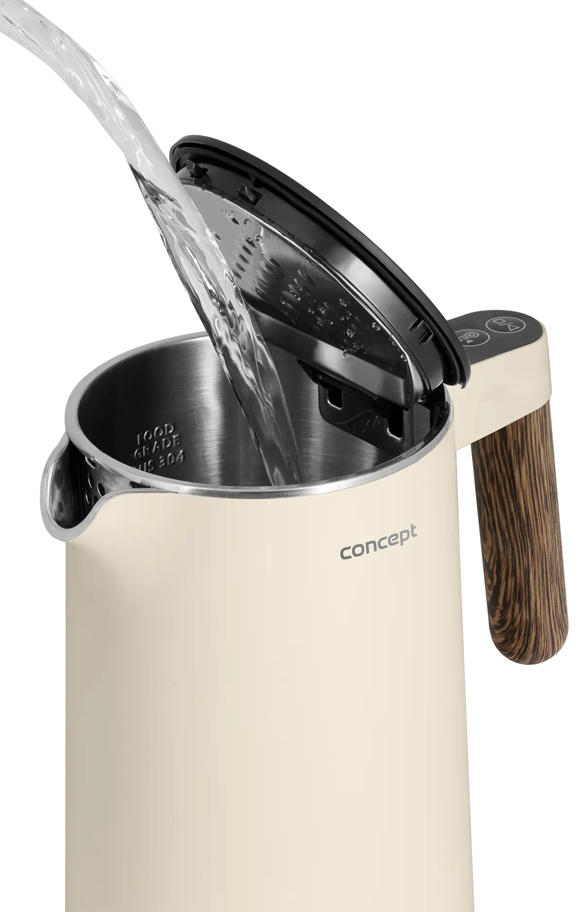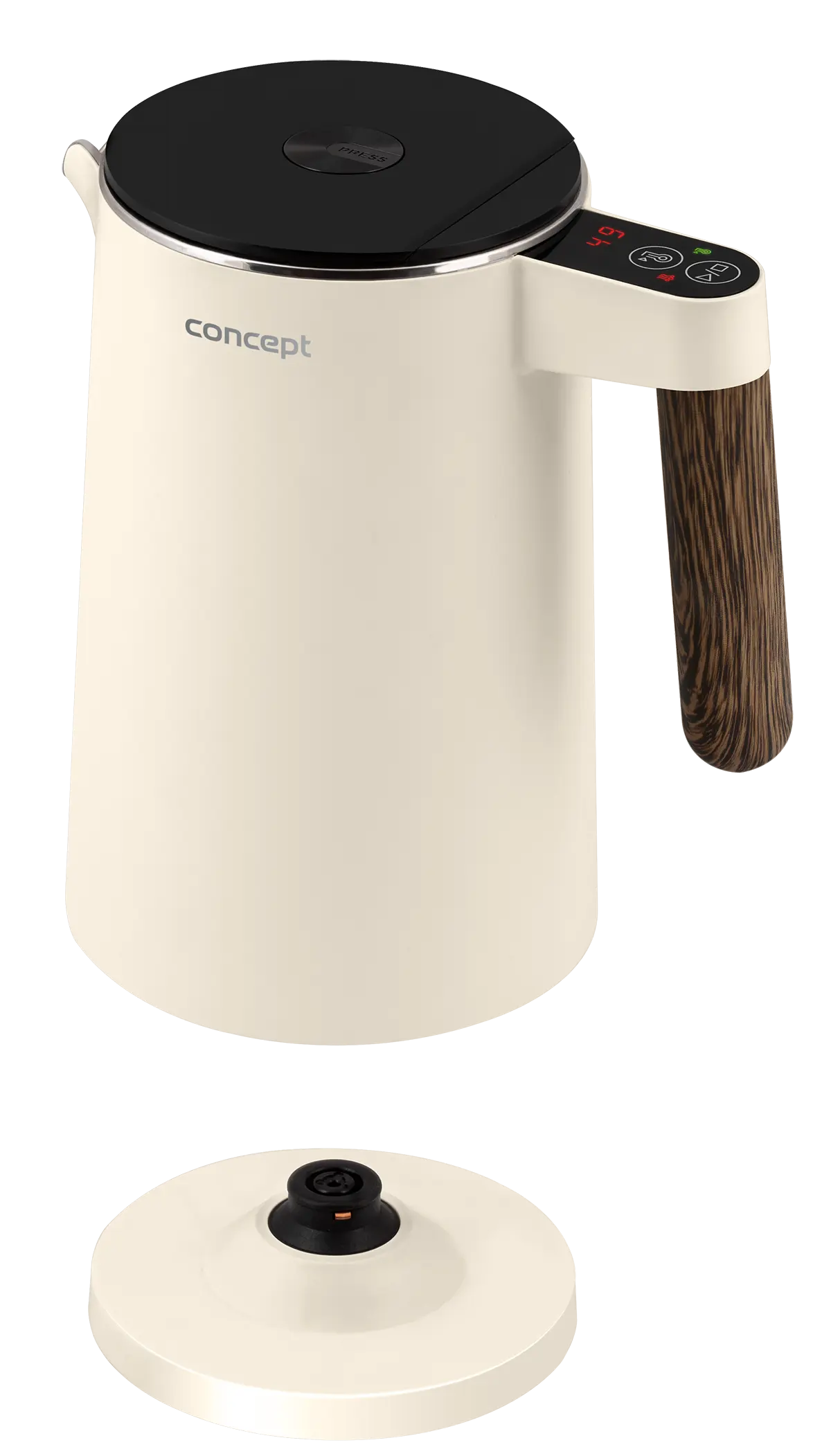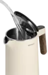 Rýchlovarná kanvica Concept RK3304 Norwood si nájde miesto v každej domácnosti. Jej atraktívny design podčiarkuje matné telo vo farbe vanilky doplnené o elegantné madlo v dizajne dreva. Veľmi elegantne pôsobí aj minimalistický podstavec, na ktorom je kanvica usadená. S objemom 1,5 l s ňou pohodlne pripravíte až 6 šálok vášho obľúbeného horúceho nápoja.