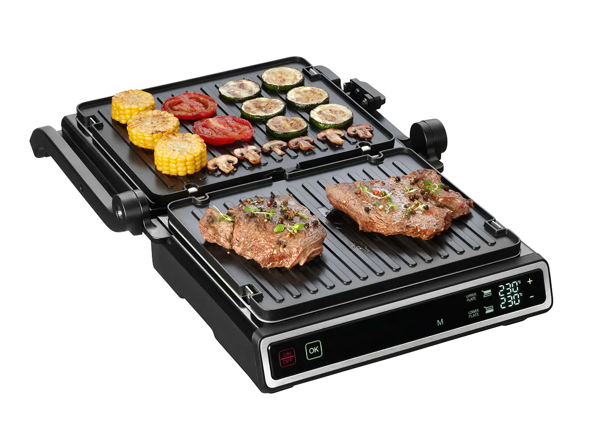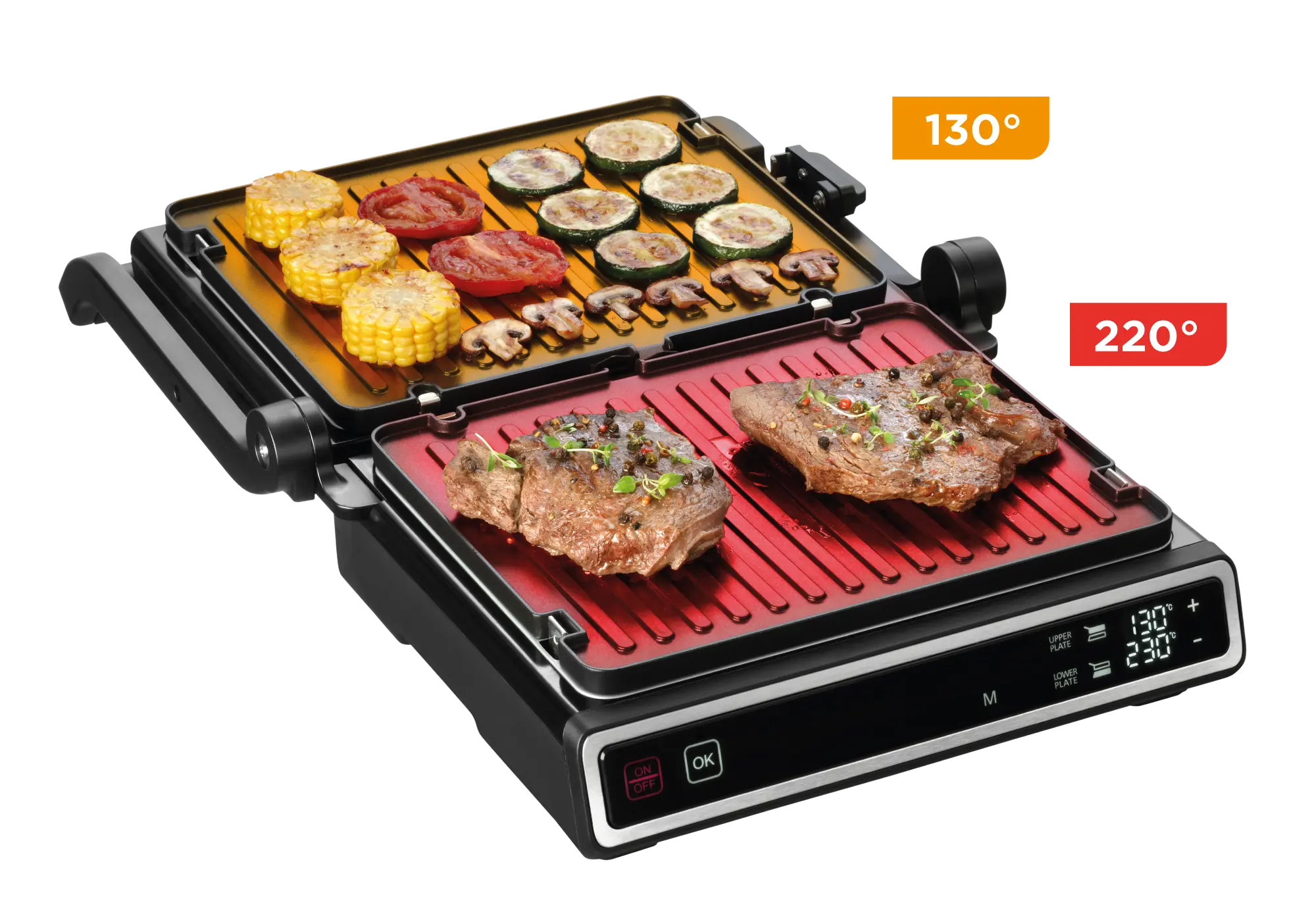 Nastavenie teploty pre každú dosku zvlášť umožňuje grilovanie rôznych druhov pokrmov naraz