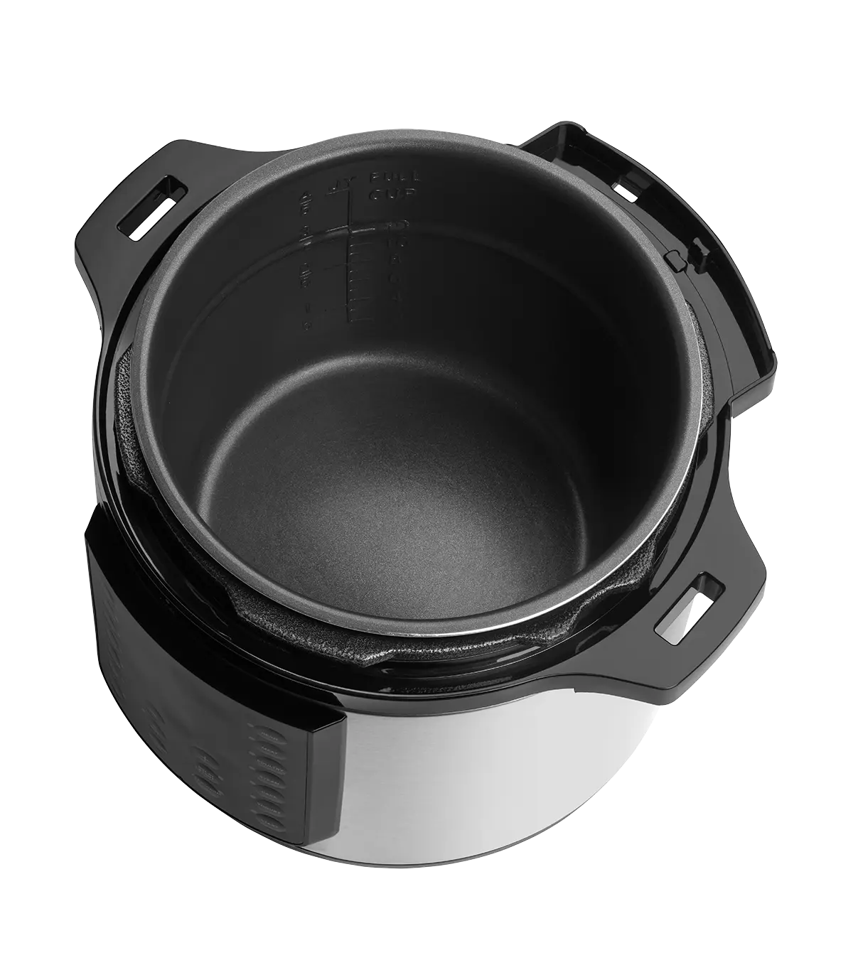 Hrniec je vybavený radou bezpečnostných prvkov. Zámok pokrievky zabráni otvoreniu natlakovaného hrnca počas varenia, čím predchádza riziku oparenia z rýchleho úniku pary. Deaktivuje sa až v okamihu, kedy tlak vo vnútri hrnca klesne na bezpečnú hodnotu. Nechýba ani poistka, ktorá hrniec ochráni proti prehriatiu a protišmykové nožičky pre lepšie upevnenie hrnca na kuchynskej linke. Vnútorná nádoba je opatrená nepriľnavým povrchom, takže sa na ňu nič neprichytáva, dobre sa čistí a môžete ju umývať v umývačke riadu. Vonkajší povrch hrnca stačí po vychladnutí utrieť vlhkou handrou.