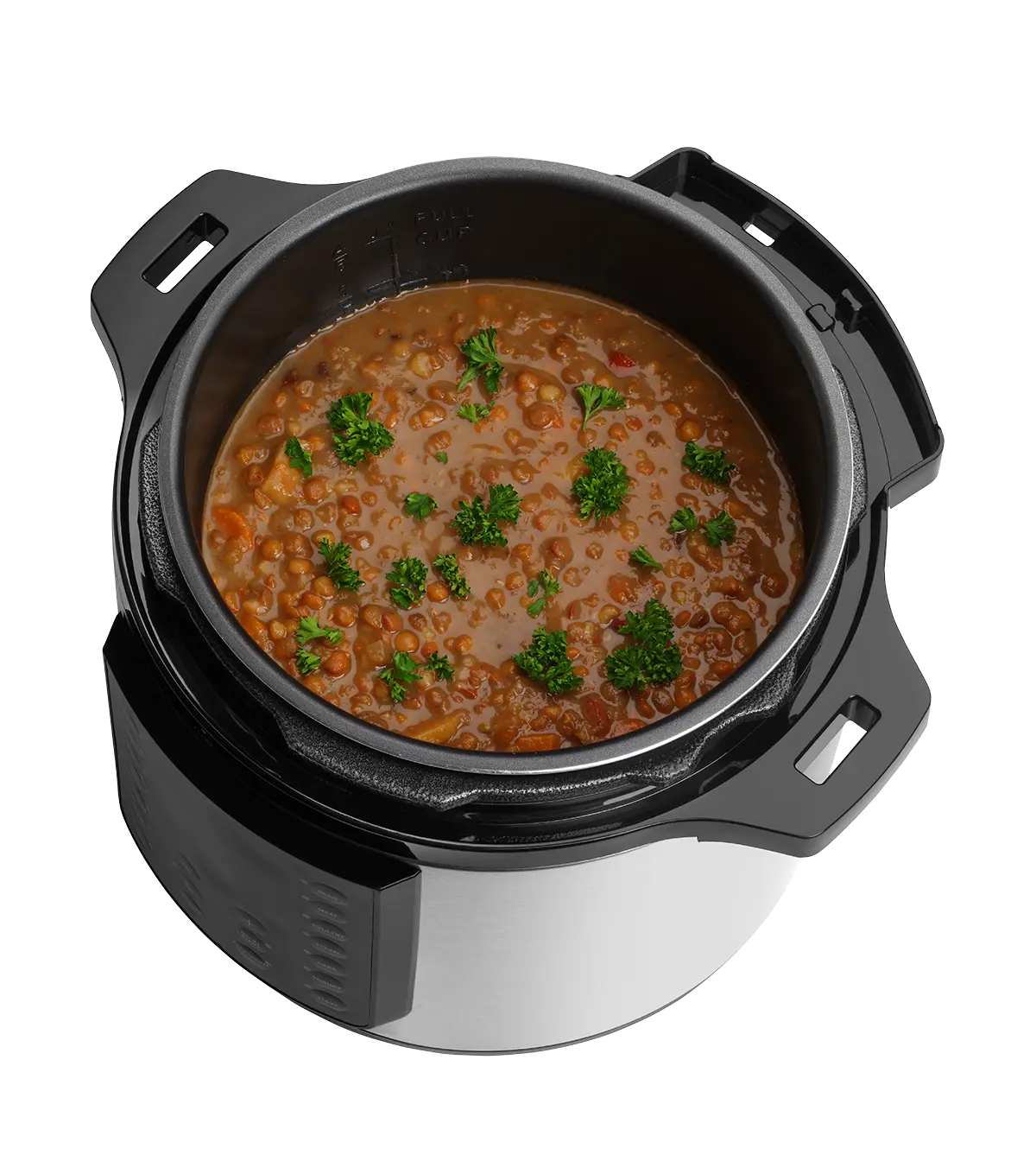 Hlavnou prednosťou multifunkčného tlakového hrnca je úspora času a energie, pretože varenie pod tlakom je veľmi rýchle. Hovädzí guľáš alebo poctivý vývar zvládnete uvariť za 35 minút. Potraviny si naviac zachovávajú svoju prirodzenú chuť a arómu a vďaka kratšej dobe varenia i dôležité živiny. Mäso varené v tlakovom hrnci je krehkejšie a šťavnatejšie a zelenina si uchová svoju prirodzenú farbu. Počas varenia môžete voliť z dvoch úrovní tlaku - vysokej a nízkej. Varenie pod vysokým tlakom výrazne skráti dobu prípravy. Nízky tlak voľte u jemných druhov potravín, aby nedošlo k narušeniu ich štruktúry.