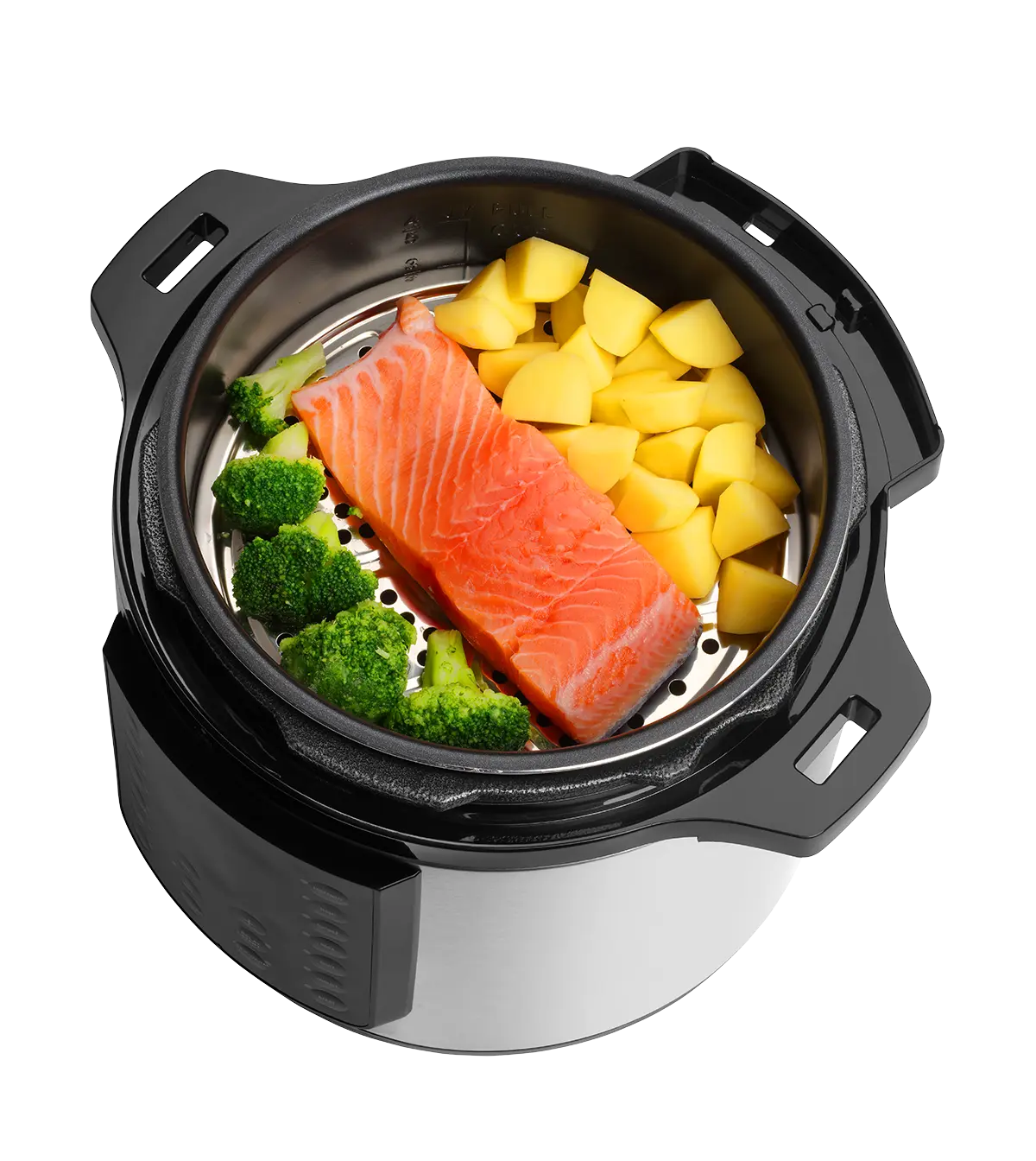V pare môžete pripraviť takmer čokoľvek - zeleninu, mäso, ryžu, zemiaky, strukoviny, knedle a plno ďalších potravín vr. ich ohrievania. Para neničí vitamíny a dôležité živiny a zachováva prirodzenú chuť potravín. Počas prípravy nemusíte používať žiaden tuk ani olej. Jedlo sa tak stáva zdravším a zároveň i chutnejším. K vareniu v pare slúži naparovací kôš, ktorý ľahko umiestnite do špeciálnych prelisov vo vnútri nádoby. Nepotrebujete teda žiaden stojan, čo je veľmi praktické a úsporné na skladovanie.