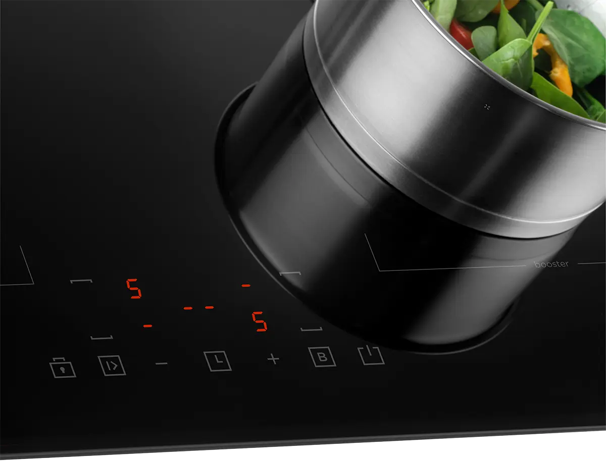 Potrebujete rýchlo priviesť k varu vodu napr. na cestoviny? Využite funkciu Powerbooster, ktorá dokáže krátkodobo zvýšiť výkon varnej zóny, a tým skrátiť dobu ohrevu. Touto funkciou sú vybavené všetky varné zóny.