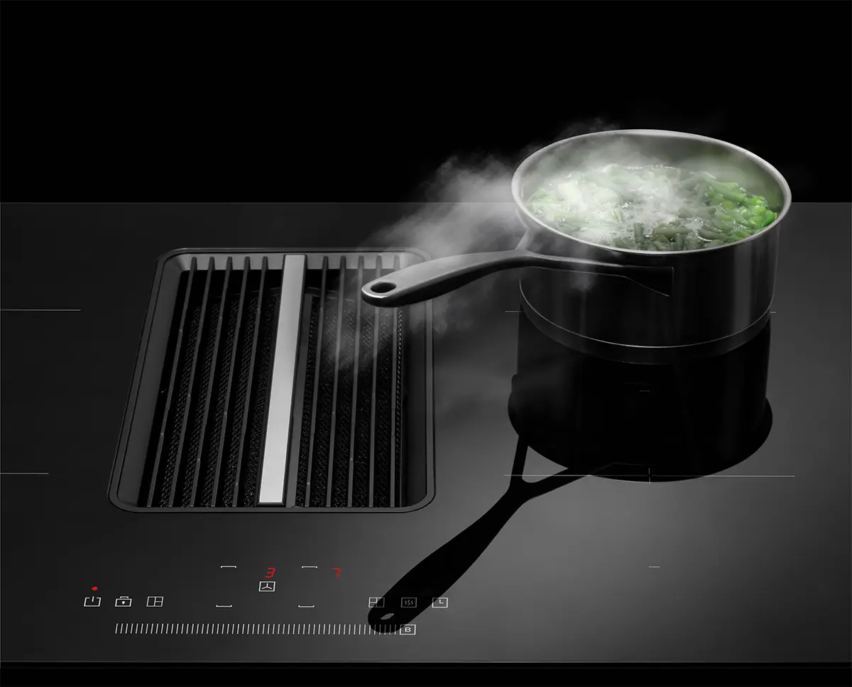 Varná doska IDV6083bc s odsávačom ponúka dve možnosti odťahu. Paru môžete odvádzať prostredníctvom potrubného systému von z miestnosti alebo využiť systém recirkulácie. Veľkou výhodou sú dva samostatné uhlíkové filtre, cez ktoré sa nasiate pary a zápach prečisťujú. Vďaka tomu dosahuje tento model výrazne lepšiu a efektívnejšiu filtráciu vzduchu oproti bežným modelom osadeným len jedným filtrom.