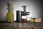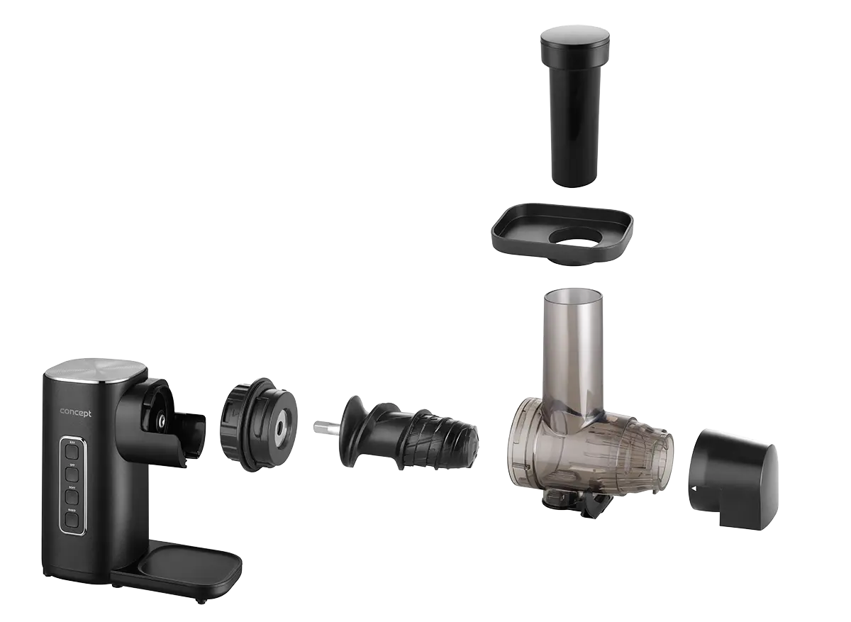 Odšťavovač LO3000 je spracovaný v modernom čiernom designe doplnený o elegantné chrómové prvky. Veľmi praktické je jeho minimalistické prevedenie, vďaka ktorému vám v kuchyni nezaberie takmer žiadne miesto. Skladné riešenie ponúka tiež nádoby na zachytávanie šťavy a dužiny, ktoré je možné vsadiť do seba, takže vám nebudú počas skladovania nikde prekážať.