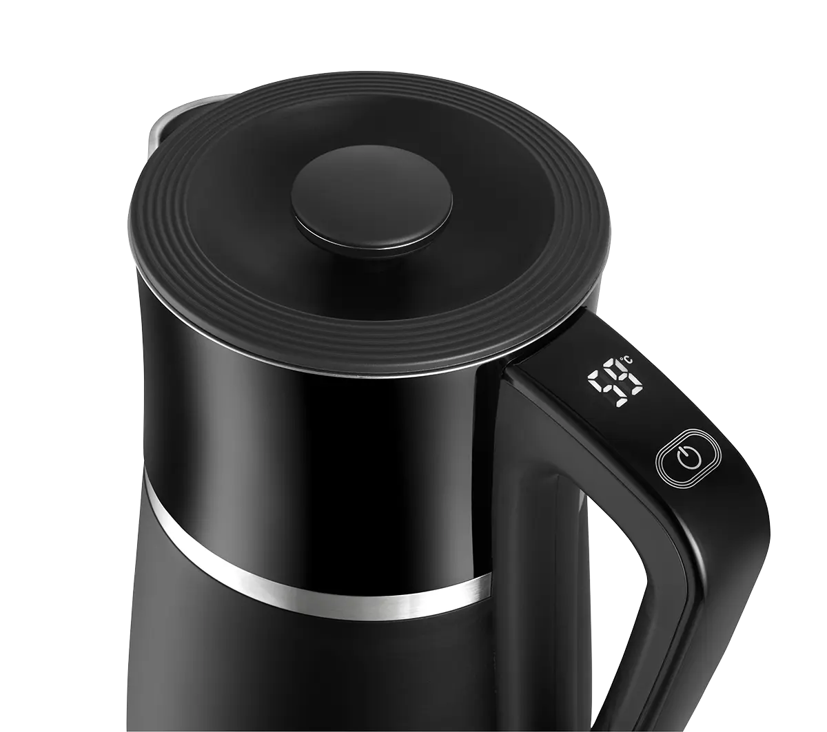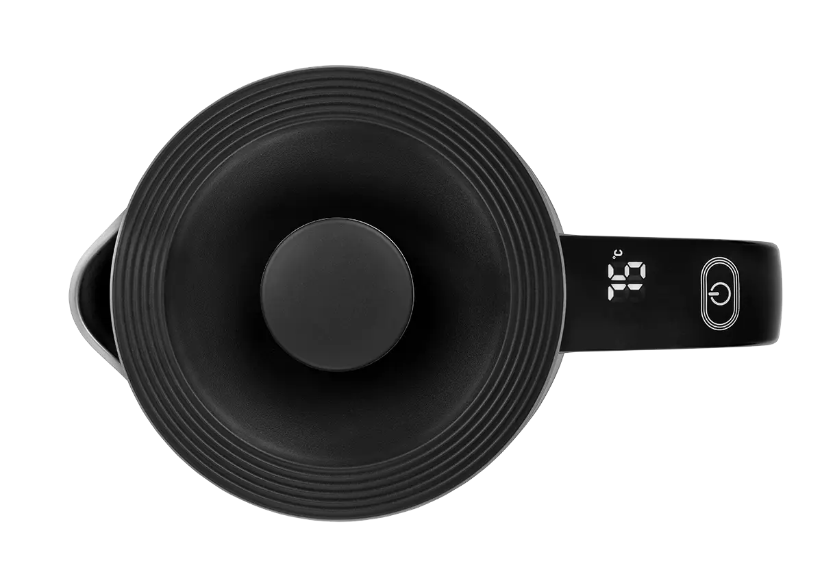 Rýchlovarná kanvica RK3100 s objemom 1,7 l zaujme moderným čiernym designom, ktorý kombinuje matné a lesklé spracovanie doplnené o nerezový prvok. Je opatrená LCD displejom s ukazovateľom nastavenej a aktuálnej teploty a jednoduchým digitálnym ovládaním pomocou jedného tlačidla. Celkovú atraktivitu kanvice podčiarkuje minimalistický podstavec, na ktorý môžete kanvicu postaviť z akéhokoľvek uhla.