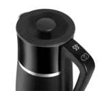 Rýchlovarná kanvica je vybavená digitálnym ovládaním s možnosťou nastavenia 7 stupňov teploty, takže v nej pripravíte všetko od detských príkrmov po najrôznejšie druhy čajov. Vyniká dizajnom dymového skla a nerezu s farebným podsvietením.