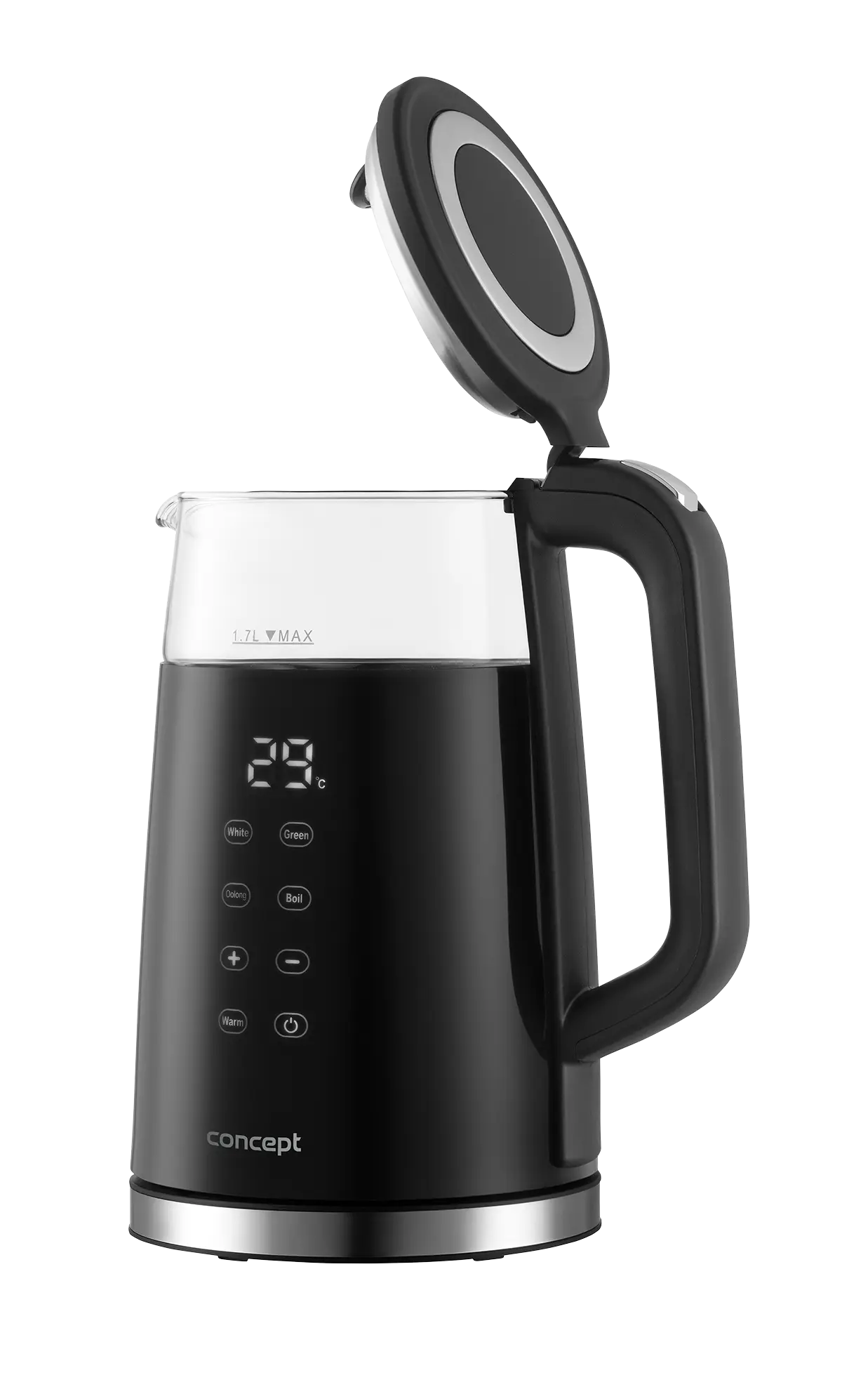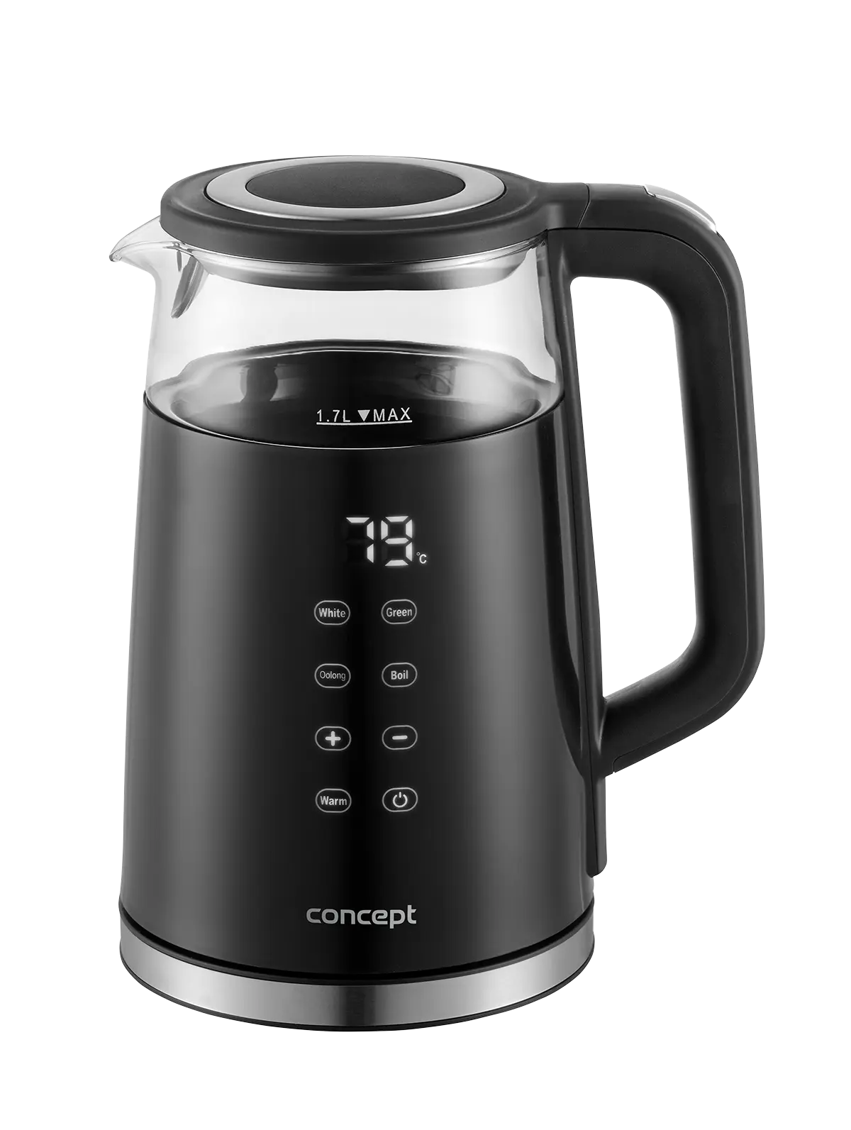 Rýchlovarná kanvica je vybavená digitálnym ovládaním s možnosťou nastavenia 7 stupňov teploty, takže v nej pripravíte všetko od detských príkrmov po najrôznejšie druhy čajov. Vyniká dizajnom dymového skla a nerezu s farebným podsvietením.