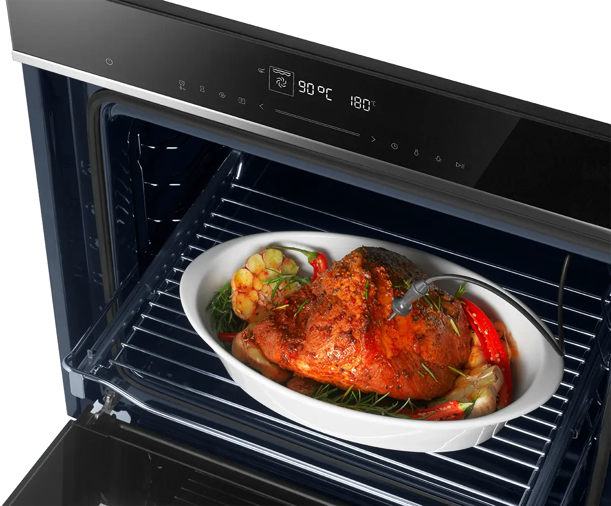Rúra je vybavená špeciálnou sondou na pečenie, pomocou ktorej zmeriate presnú teplotu vo vnútri pokrmu. Oceníte ju predovšetkým pri príprave pečiva alebo mäsa, pretože budete s istotou vedieť, kedy je váš pokrm hotový a pripravený na servírovanie. Výsledkom budú perfektne prepečené a šťavnaté pochúťky.