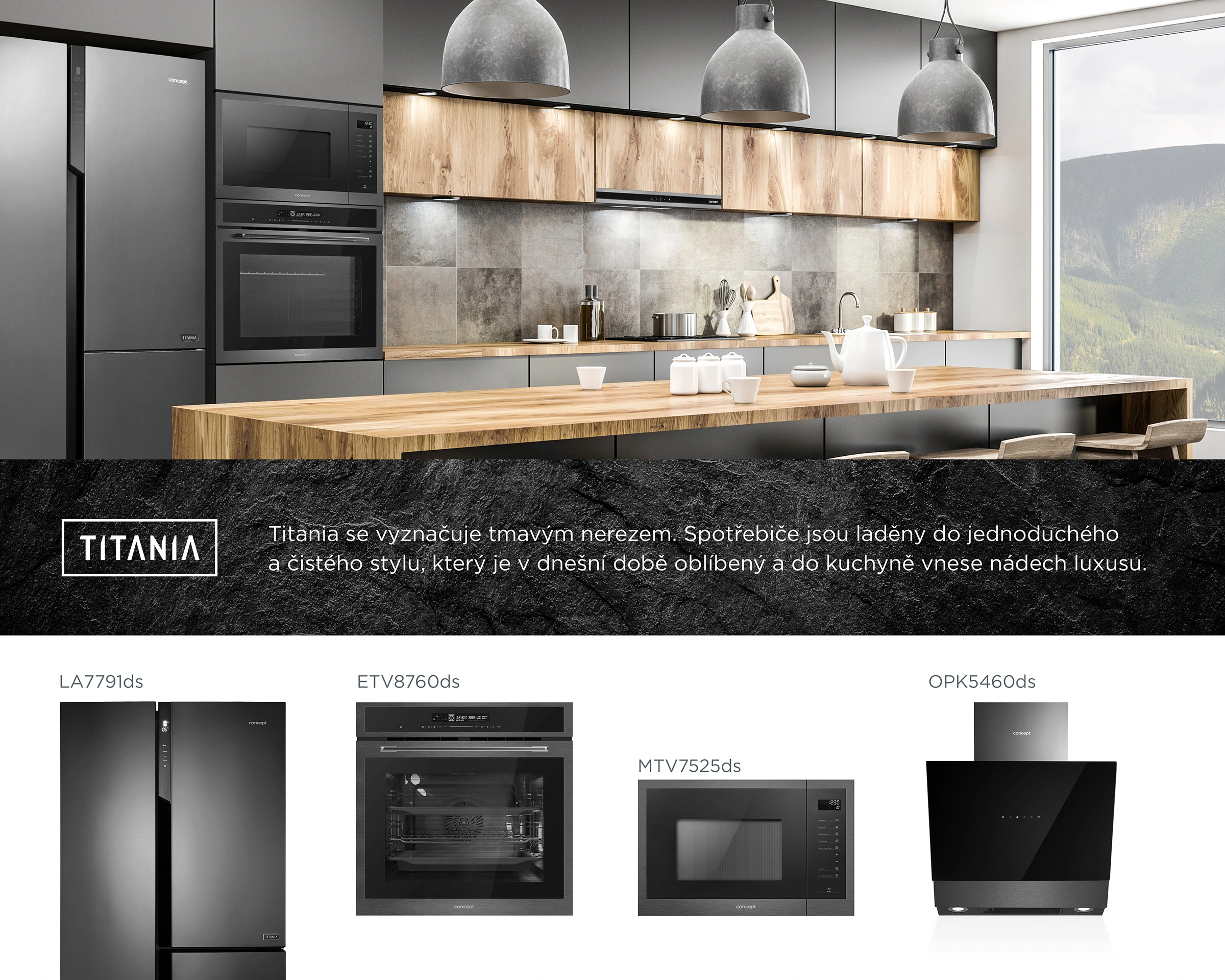 Designová línia Titania, zaujala natoľko, že si vyslúžila ocenenie od spoločnosti Czechdesign. Táto organizácia, venujúca sa už niekoľko rokov popularizácii českého designu, vyzdvihla moderný vzhľad a funkčný design jednotlivých produktov. Líniu Titania odporučila ako dizajnovo zladenú a vhodnú na docielenie harmonickej kuchyne. Pre nás je to impulz, že ideme správnym smerom. Teší nás, že môžeme k našim spotrebičom pridať štítok Czechdesign odporúča.