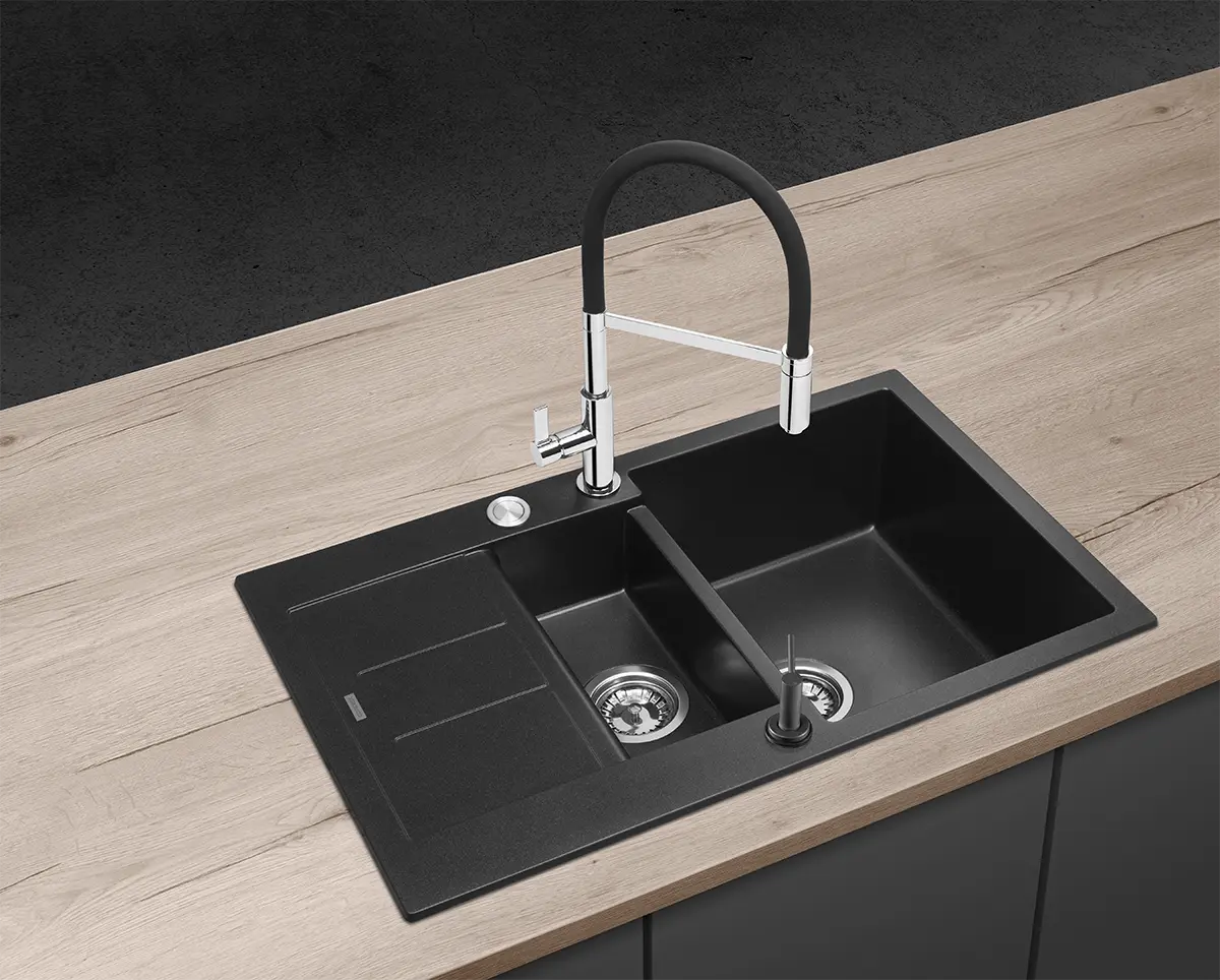 Granitový drez s odkvapom LINEA Concept DG10L60bc; Kvalitné spracovanie; PUSH-IN ovládanie; Flexibilné využitie; Moderný design a prednosti; Atraktívny vzhľad, kvalitné spracovanie, vysoká odolnosť a ľahká údržba, to sú hlavné prednosti granitových dre...