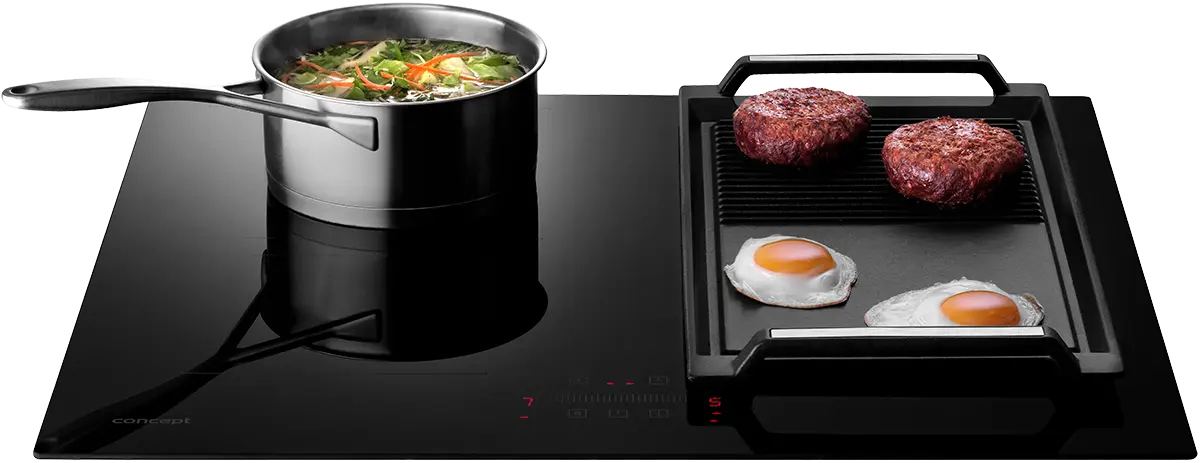 Grilovacia doska Concept GD455 je kompatibilná so všetkými indukčnými varičmi Concept opatrenými "FLEXI" alebo "BRIDGE" zónou.
