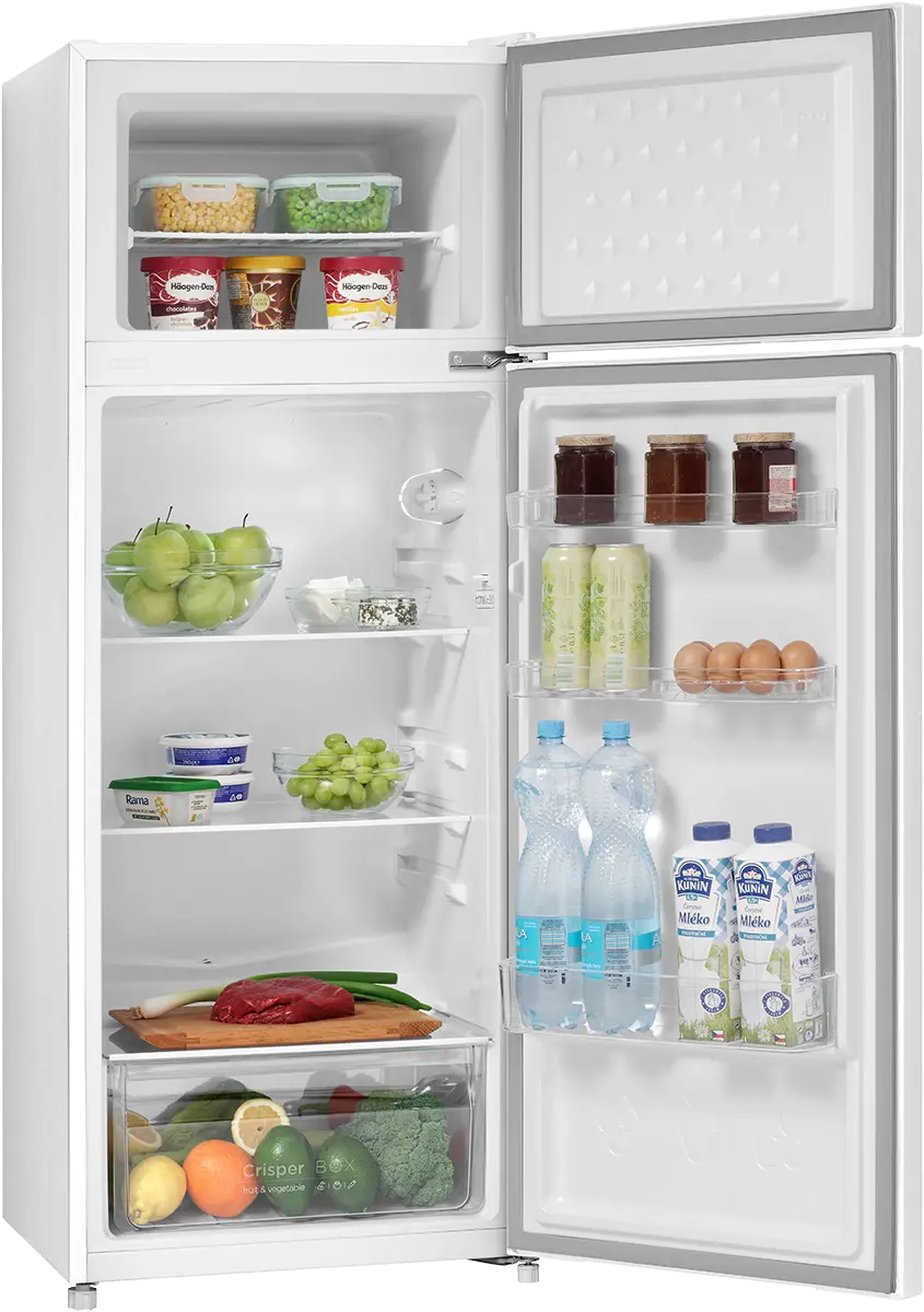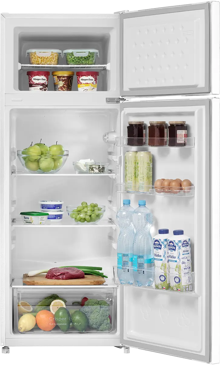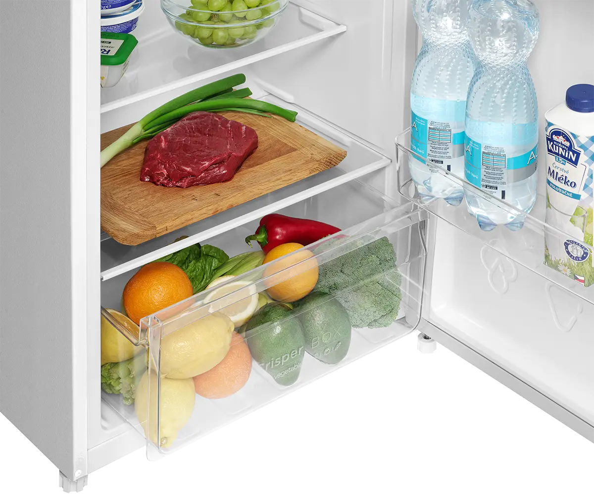 Celkový objem 211 l ponúka dostatok priestoru na uskladnenie potravín. Chladničku s kapacitou 170 l tvoria 3 police a výsuvná zásuvka na ovocie a zeleninu. Dostatok priestoru ponúka aj praktické priehradky vo dvierkach, ktoré sú vhodné na ukladanie nápojov a drobných potravín. Oddelená mraznička, umiestnená v hornej časti chladničky, disponuje objemom 41 l.