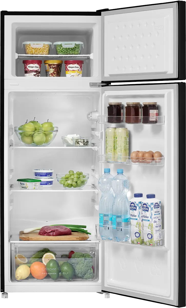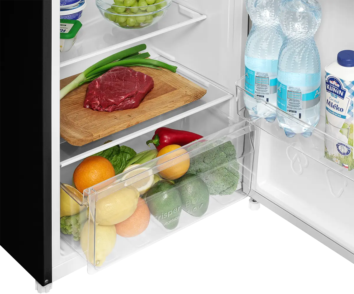 Celkový objem 211 l ponúka dostatok priestoru na uskladnenie potravín. Chladničku s kapacitou 170 l tvoria 3 police a výsuvná zásuvka na ovocie a zeleninu. Dostatok priestoru ponúkajú aj praktické priehradky vo dvierkach, ktoré sú vhodné na ukladanie nápojov a drobných potravín. Oddelená mraznička, umiestnená v hornej časti chladničky, disponuje objemom 41 l.