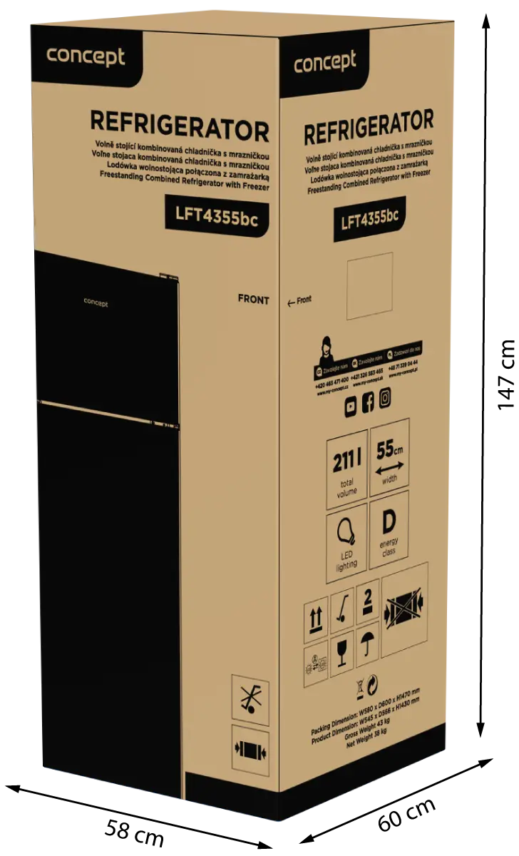 Kombinovaná chladnička s mrazničkou LFT4355bc je ideálnou voľbou do menších kuchýň. So šírkou iba 540 mm a hĺbkou 551 mm ju pohodlne zasadíte do väčšiny bežných kuchynských liniek bez toho, aby vám vystupovala do priestoru. Vďaka svojej nízkej spotrebe iba 141 kWh za rok patrí medzi najúspornejšie modely vo svojej kategórii.