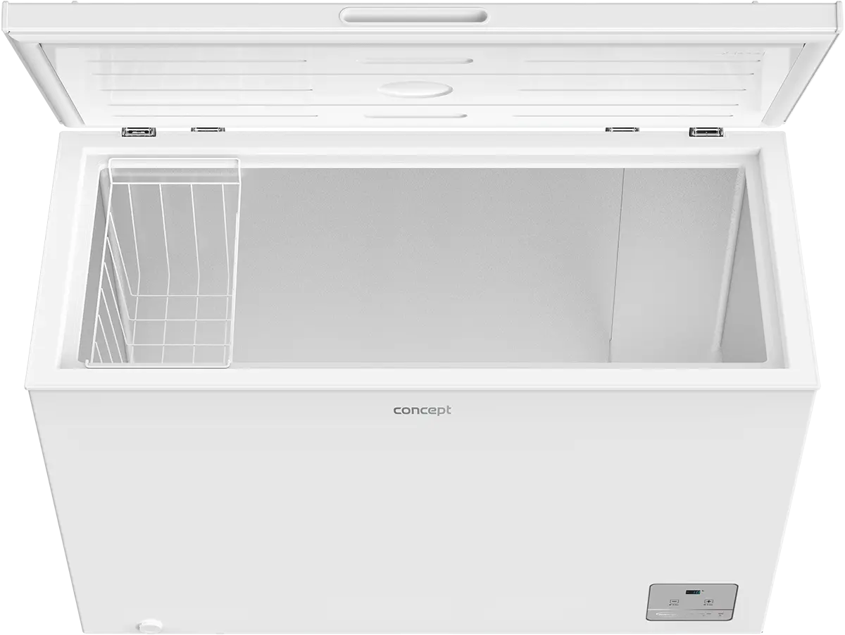 Pultová mraznička Concept MP5130 je vhodná na dlhodobé uskladnenie veľkého množstva potravín. Vnútorný priestor s kapacitou 299 l pohodlne pojme aj objemné kusy mäsa a iných potravín. Vďaka kvalitnému tesneniu udržií vaše zásoby zmrazené aj v prípade výpadku prúdu, a to po dobu až 22 h.