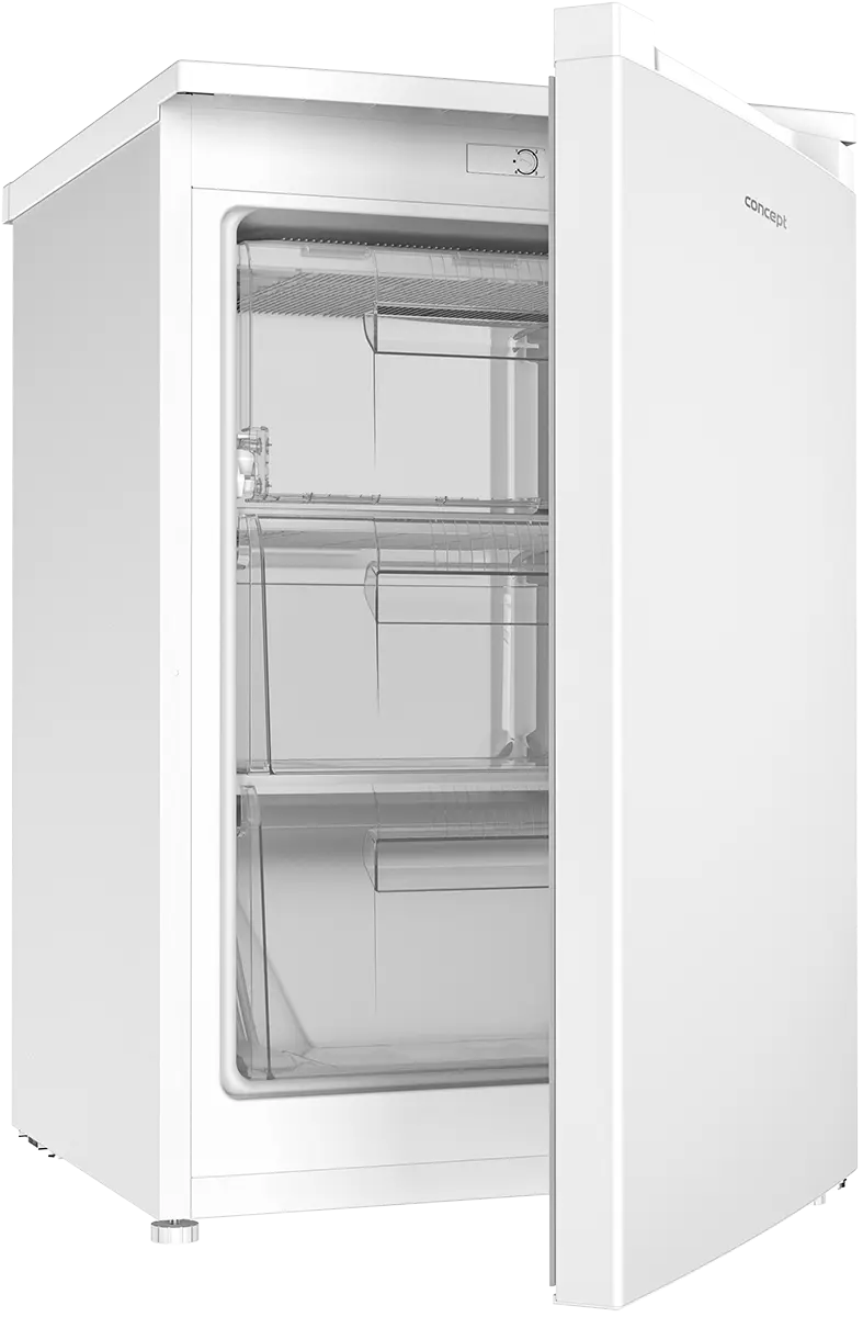 Zásuvková mraznička Concept MZ2355wh s objemom 85 l je ideálnym doplnkom ku klasickej chladničke. Vnútorný priestor je rozdelený na 2 zásuvky a vrchnú poličku s výklopnými dvierkami, ktoré poskytujú perfektný prehľad o uložených potravinách. Na ich plnohodnotné vysunutie stačí dvere mrazničky otvoriť iba do 90°. Vďaka tomu tento model ľahko umiestnite aj do užších priestorov alebo blízko steny. Mraznička disponuje kvalitnou izoláciou, ktorá udrží vaše zásoby zamrazené aj v okamihu výpadku elektrickej energie, a to po dobu až 10 h.