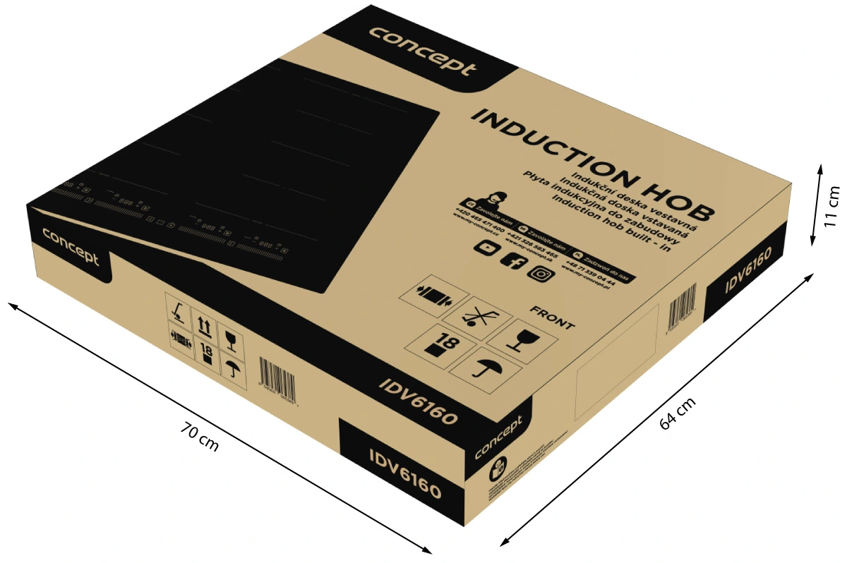 Hlavnou prednosťou indukčnej dosky Concept IDV6160 je jej nízky profil. Nová platforma H5 prináša revolúciu v inštalácii a dizajne kuchýň. Na rozdiel od bežných indukčných dosiek, ktoré vyžadujú 50 mm priestoru na odvetranie , si platforma H5 vystačí iba s 15 mm. Tento kompaktný dizajn umožňuje väčšiu flexibilitu pri inštalácii, šetrí cenný priestor a zaisťuje elegantný a moderný vzhľad vašej kuchyne bez toho, aby bola ohrozená efektivita a bezpečnosť odvetrávania.