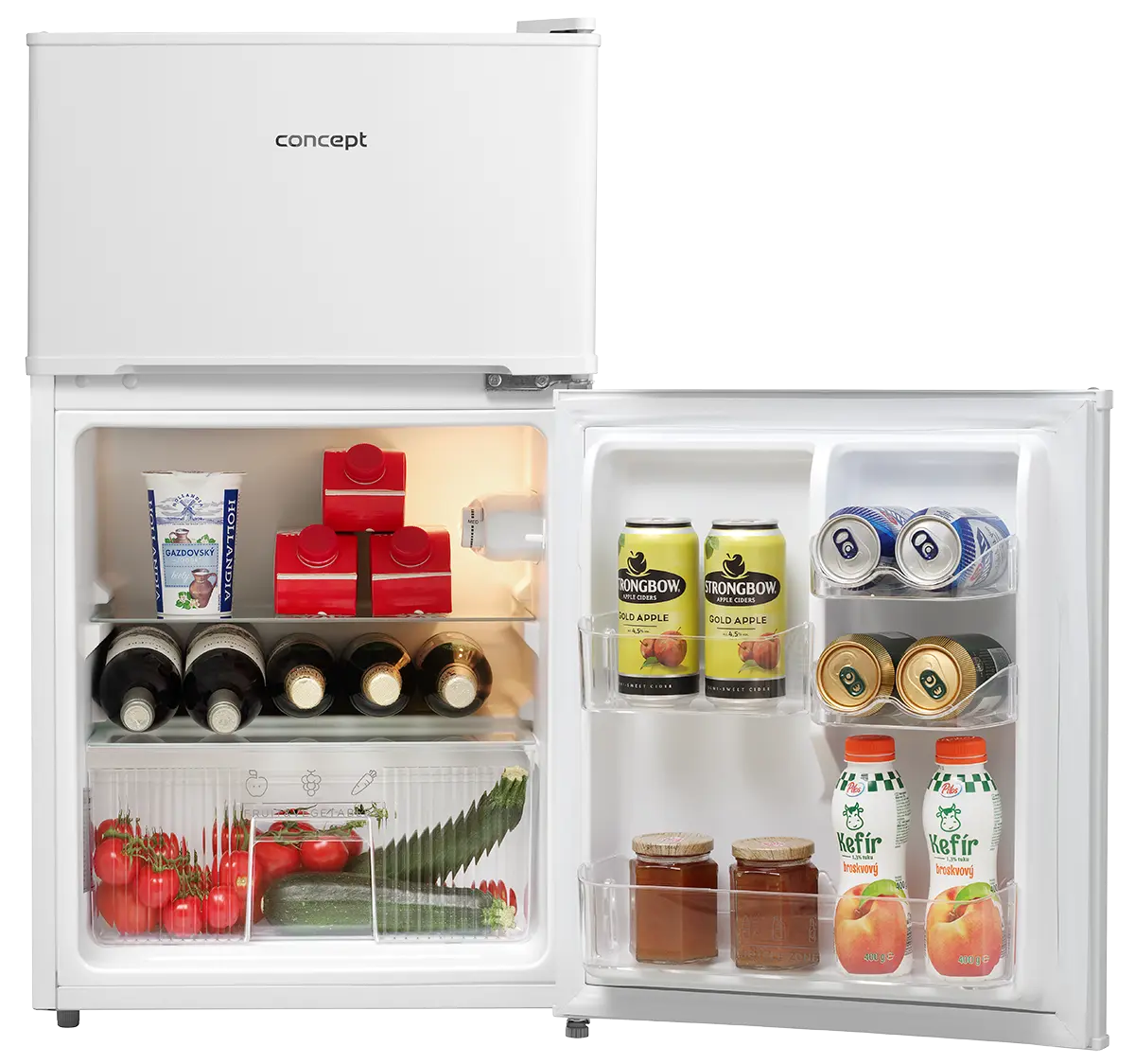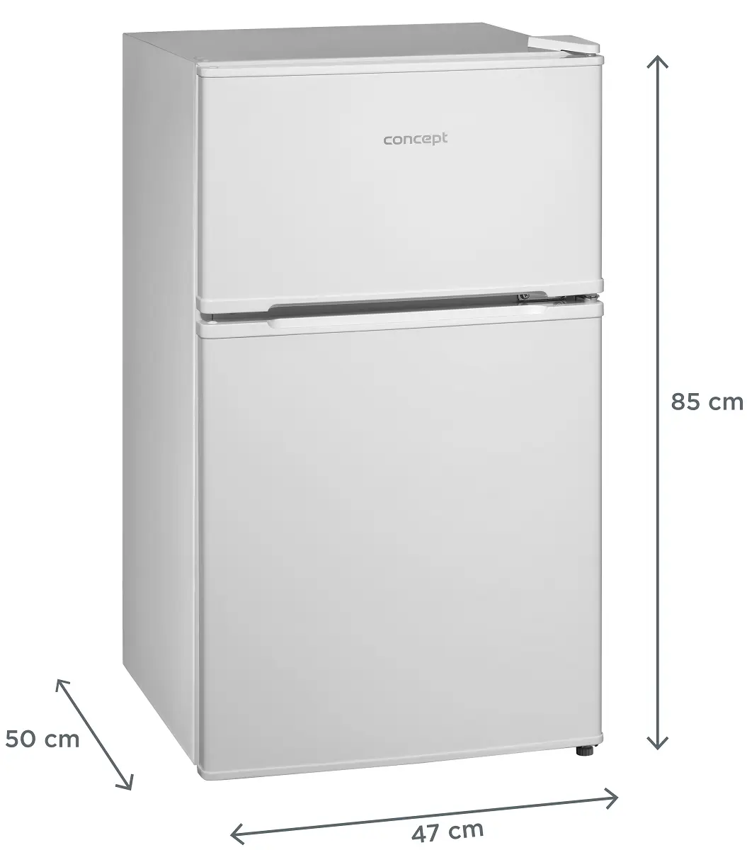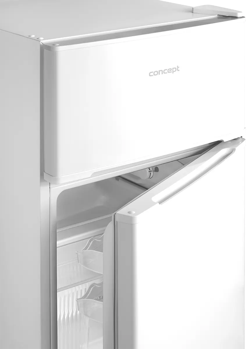 Chladnička s mrazničkou Concept LFT2047whN je voľne stojaci dvojdverový model s celkovým objemom 87 l. V dolnej časti sa nachádza chladnička s kapacitou 61 l, v ktorej sú umiestnené 2 sklenené police a priestranná zásuvka na ovocie a zeleninu. Dvere chladničky sú vybavené priehradkami na skladovanie drobných potravín. Oddelená mraznička, umiestnená v hornej časti chladničky, disponuje objemom 26 l.