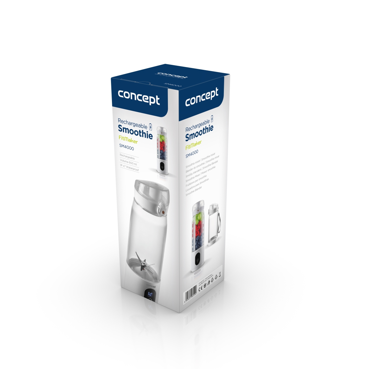 Smoothie FitMaker Concept SM4000 je pre každého, kto žije aktívnym životným štýlom a túži si ľahko a rýchlo pripraviť zdravé smoothie kedykoľvek a kdekoľvek. Disponuje integrovanou Li-Ion batériou, takže nie ste závislí na prítomnosti zásuvky. Vďaka svojmu kompaktnému a ľahkému spracovaniu sa pohodlne zmestí do batohu alebo kabelky a vy si ho tak môžete vziať kamkoľvek so sebou - na výlet, do práce alebo na cvičenie.