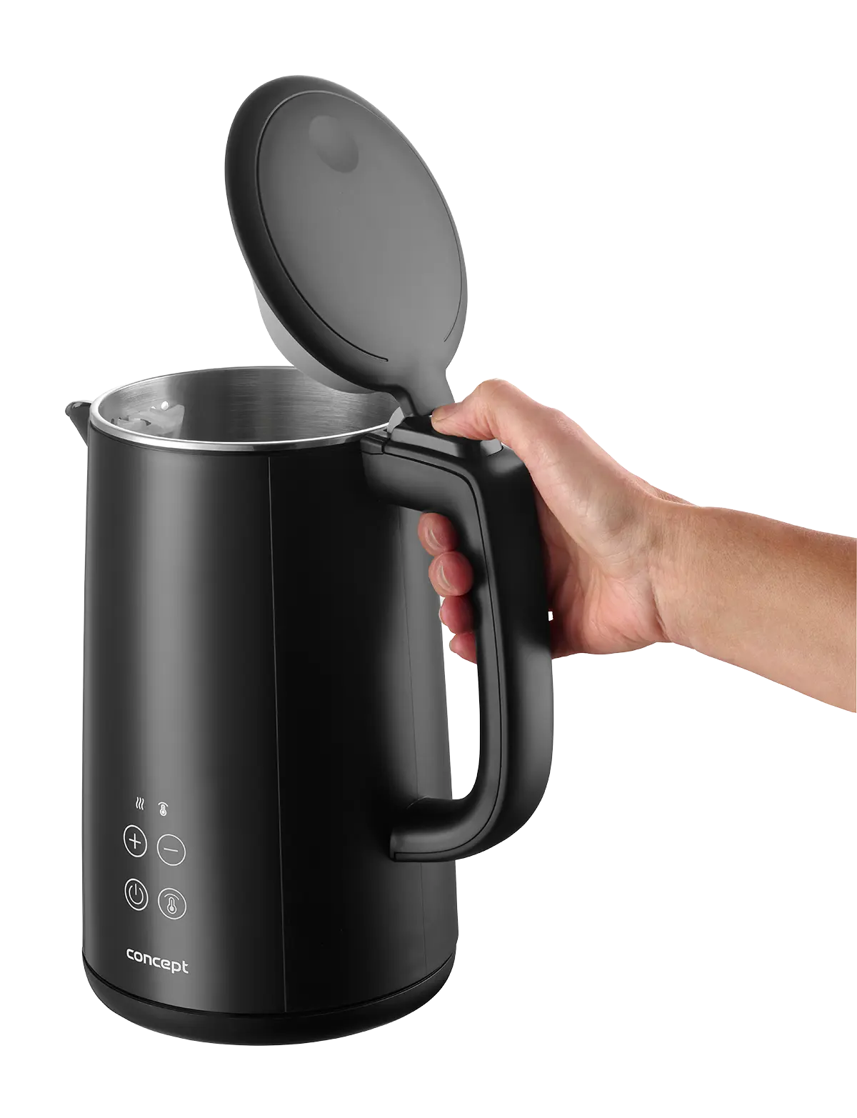 Rýchlovarná kanvica je vybavená digitálnym ovládaním s možnosťou nastavenia 7 stupňov teploty, takže v nej pripravíte všetko od detských príkrmov po najrôznejšie druhy čajov. Vyniká dizajnom dymového skla a nerezu s farebným podsvietením.