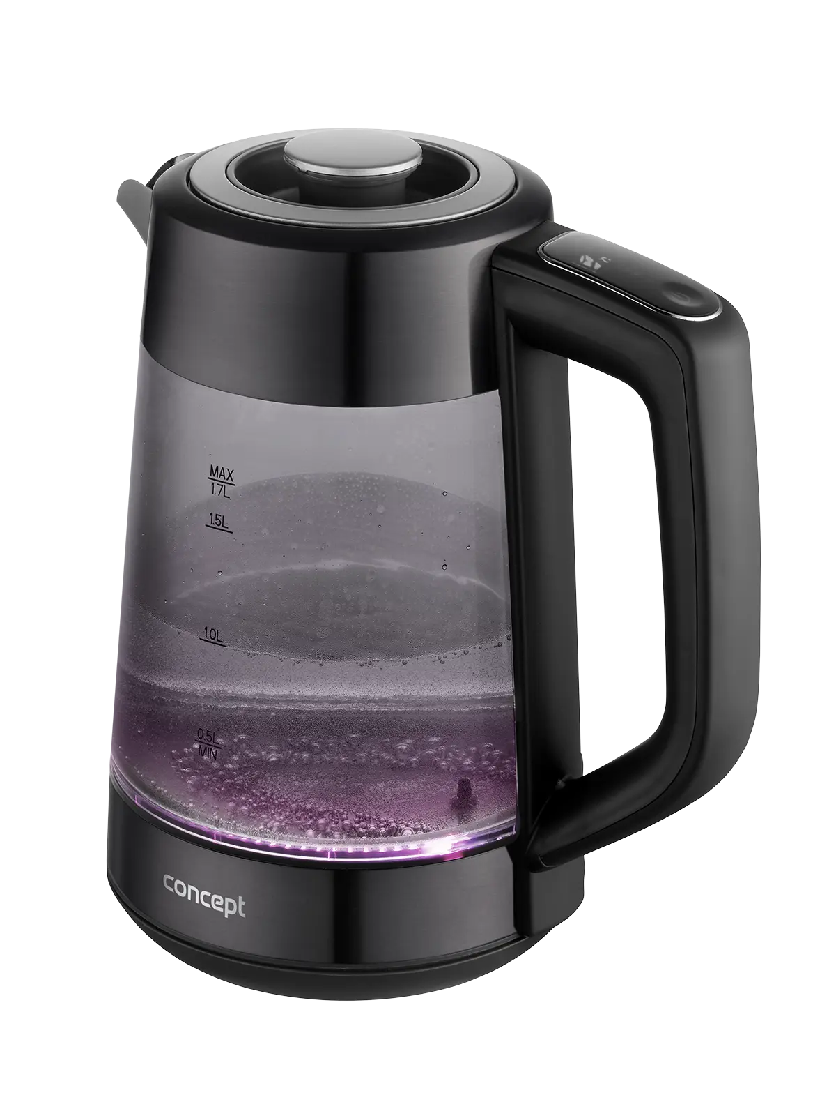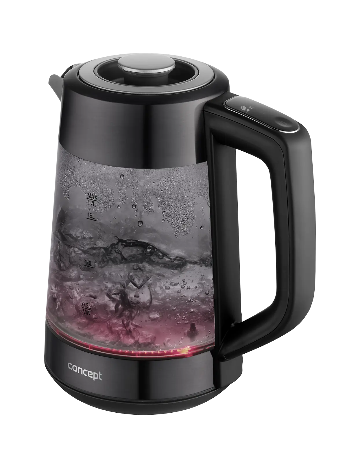 Sklenená rychlovarná kanvica 1,7 l Concept; RK4150; Borosilikátové sklo; 1,7 l; Ľahká údržba; Objem 1,7 l; S rýchlovarnou kanvicou RK4150 s príkonom 2200 W pripravíte za chvíľu až 7 šálok vášho obľúbeného horúceho nápoja. Vďaka univerzálnemu designu sk...
