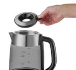 Rýchlovarná kanvica je vybavená digitálnym ovládaním s možnosťou nastavenia 7 stupňov teploty, takže v nej pripravíte všetko od detských príkrmov po najrôznejšie druhy čajov. Vyniká dizajnom dymového skla a nerezu s farebným podsvietením.