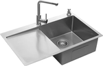 Súčasťou drezu je integrovaný dávkovač saponátu s kapacitou 350 ml, ktorý je spracovaný v rovnakom dizajne ako drez. Dávkovač je zapustený priamo do drezu, čo predstavuje veľmi praktické riešenie zlepšujúce komfort a hygienu pri umývaní riadu.
