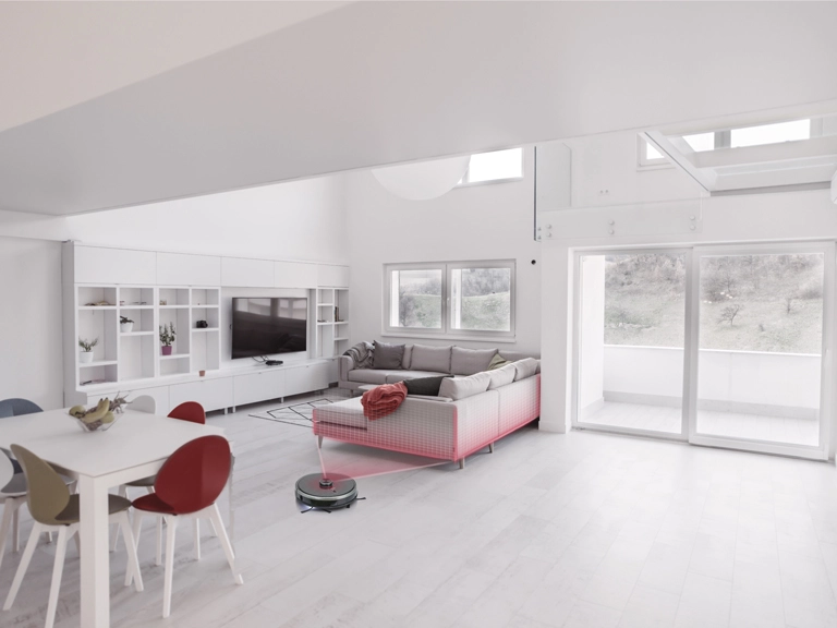 Robot je vybavený špeciálnym čidlom, ktorý zaisťuje perfektnú orientáciu pozdĺž steny a zabraňuje pádu zo schodov. Súčasne chráni vysávač aj nábytok pred poškodením. Čidlo rozpozná všetky prekážky, pred ktorými robot včas spomalí. Zároveň slúži k detekcii skla a čiernych stien, a preto si robot poradí s uprataním aj pozdĺž týchto plôch.