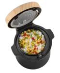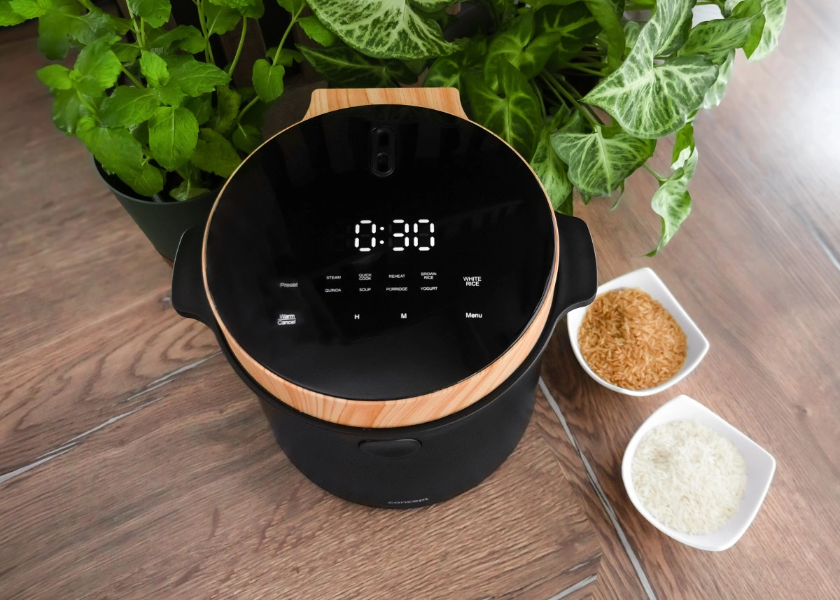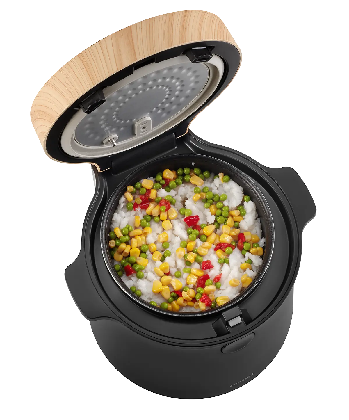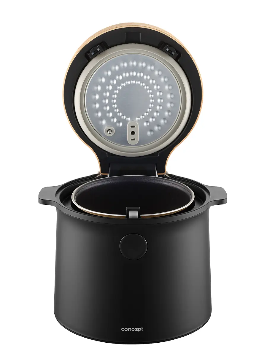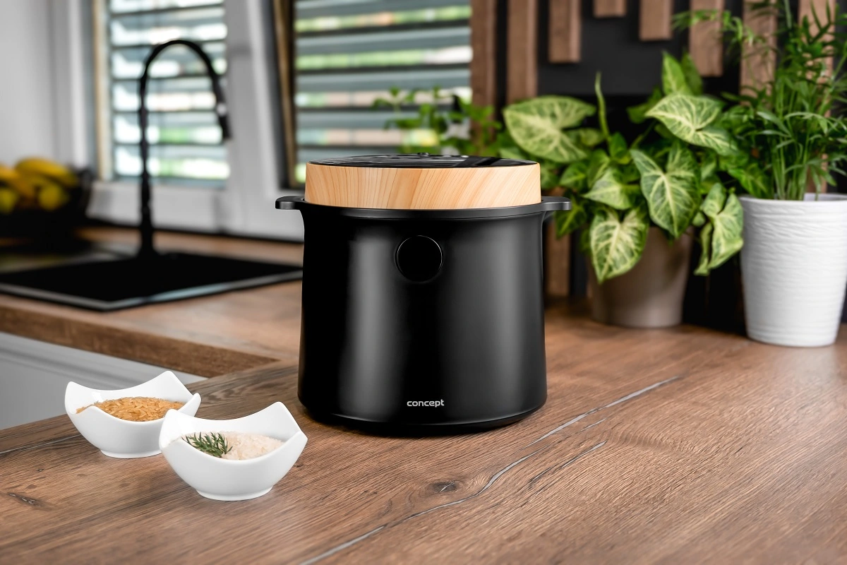 Ryžovar Concept RE4040 kombinuje praktické funkcie so štýlovým vzhľadom, ktorý sa hodí do akejkoľvek kuchyne. Jeho elegantný čierny dizajn s drevenými prvkami perfektne doplní moderný interiér. Vďaka kompaktným rozmerom sa ľahko umiestni na kuchynskú linku alebo do skrinky bez toho, aby zaberal príliš veľa miesta. Navyše je ľahký a ľahko prenosný, takže si ho môžete vziať na chalupu alebo na akékoľvek iné miesto, kde ho budete potrebovať.