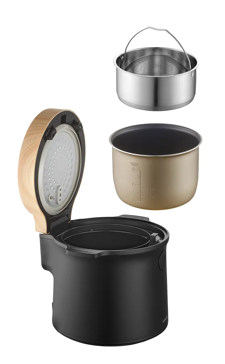 Vyberateľná vnútorná nádoba s nepriľnavým povrchom s objemom 2 l je kľúčovou vlastnosťou tohto ryžovaru. Minimalizuje priľnavosť jedla, takže čistenie nádoby je veľmi jednoduché a rýchle. Tento dizajn uľahčuje každodenné používanie a zaisťuje, že ryžovar je vždy pripravený na ďalšie použitie bez zbytočnej námahy.